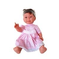 This gorgeous anatomically correct girl doll is made from soft vinyl with moveable arms and legs, and has brown eyes and brunette/brown short hair with a sweet little side pigtail.