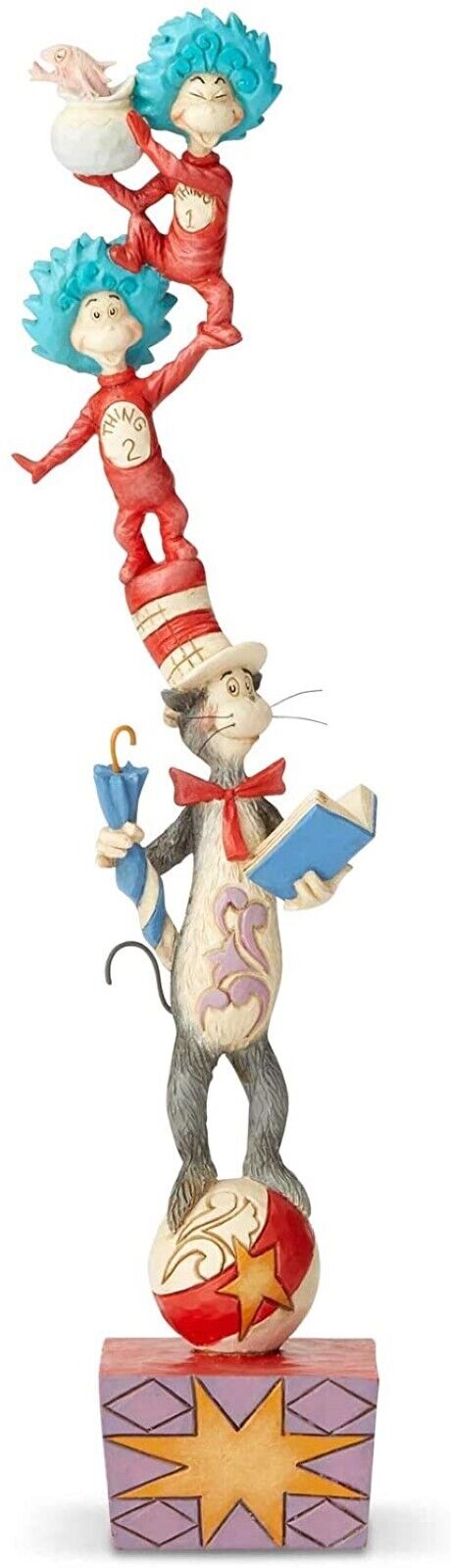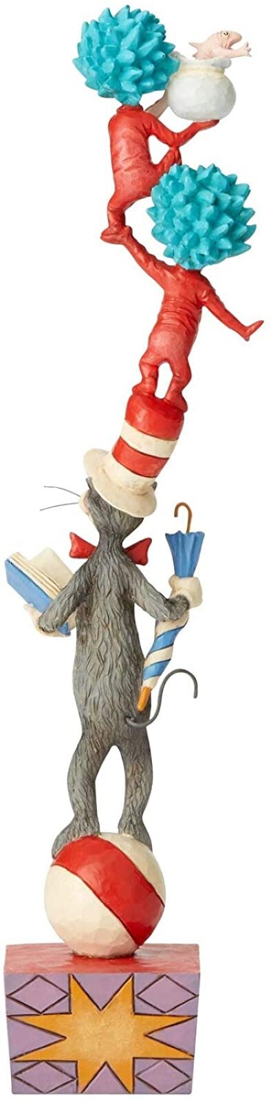 This Stacked Cat in the Hat features the beloved characters from the iconic children's book perched for destruction. Whimsically decorated with folk-art designs, this precarious totem combines the magic of Dr. Seuss and the artistry of Jim Shore.
