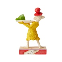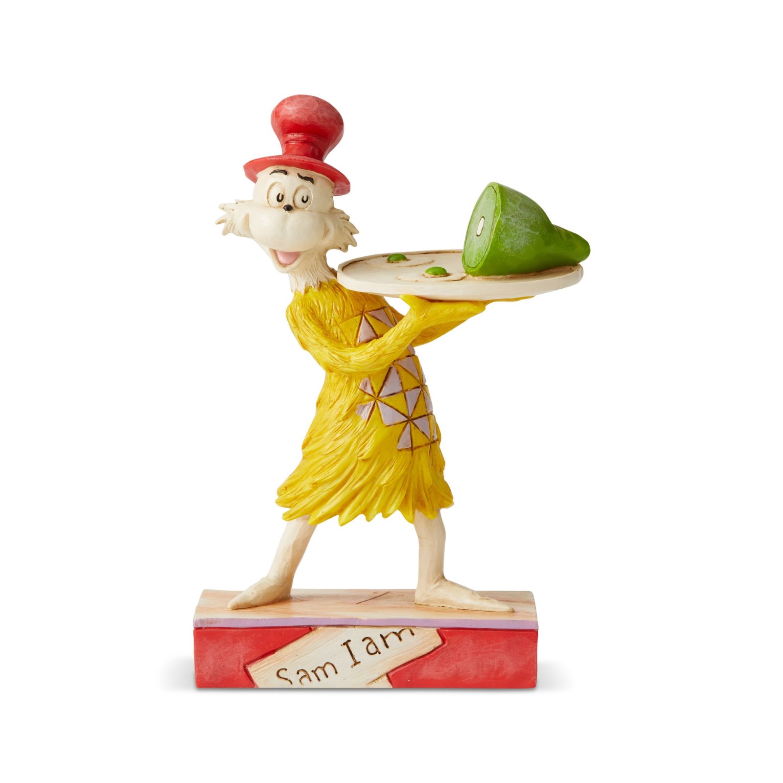 The one and only Sam hoists a tray of green eggs and ham for the brave to taste test. The Dr. Seuss classic character complete with Jim Shore rosemailing design brings a day filled with flavor and fun.