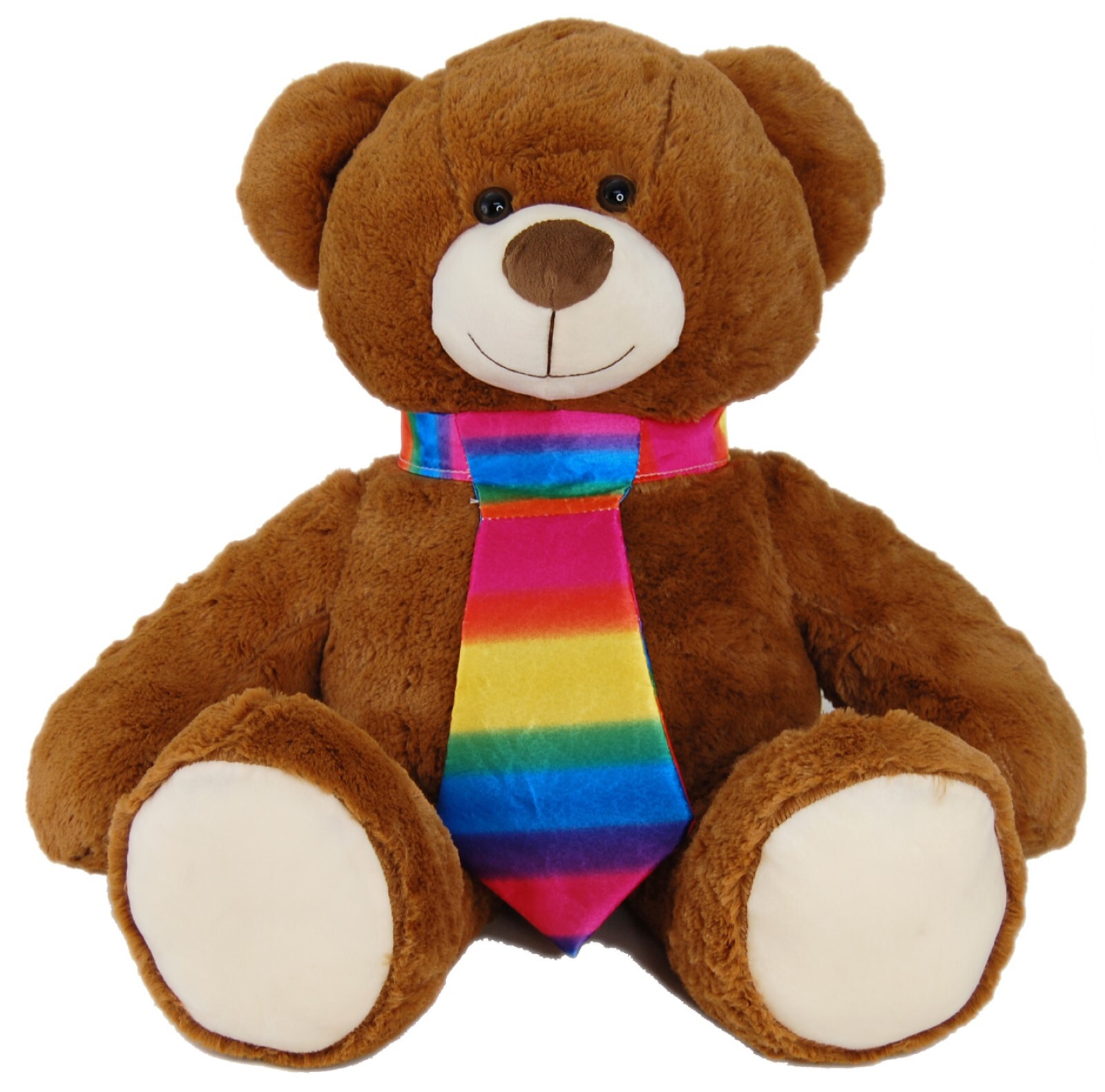 Georgie Bear is a gorgeous large brown sitting teddy bear, with a sweet face and rainbow coloured necktie.