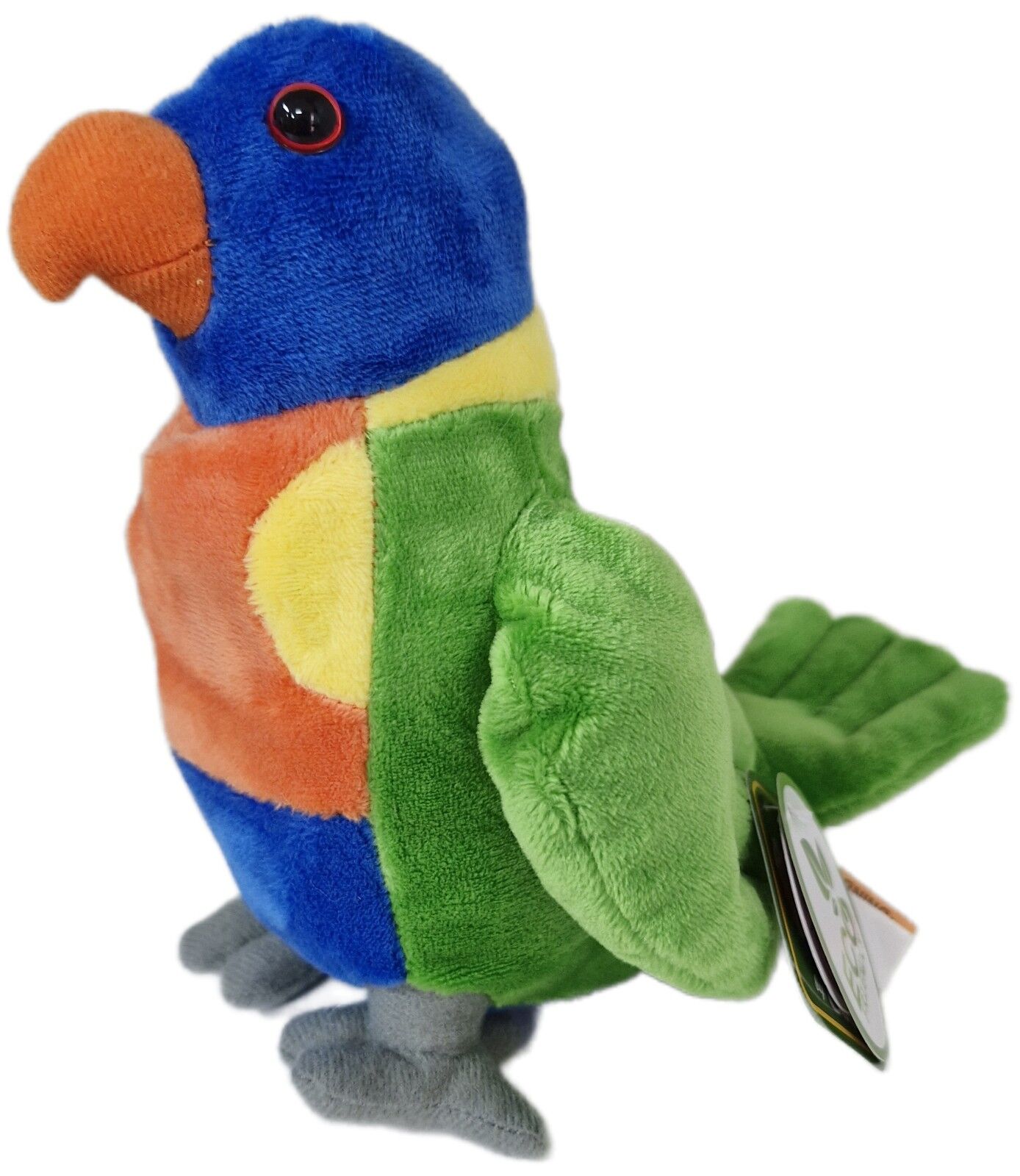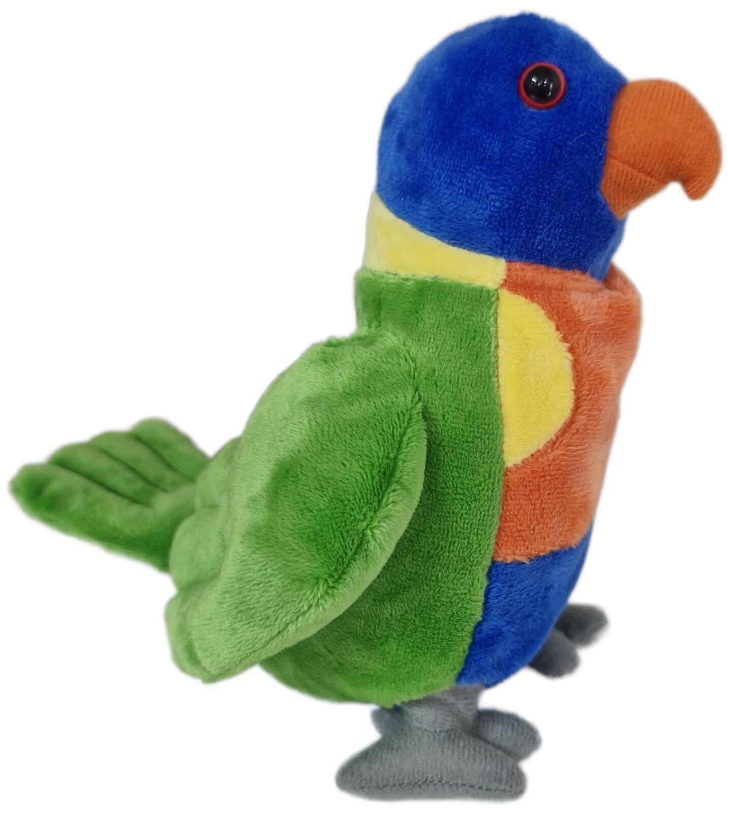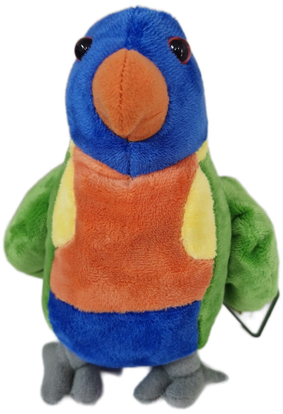 Beautiful soft plush toy, brightly coloured Australian Lorikeet Parrot with sound chip. Press the birds belly and listen to the sound this cute plush Lorikeet makes.