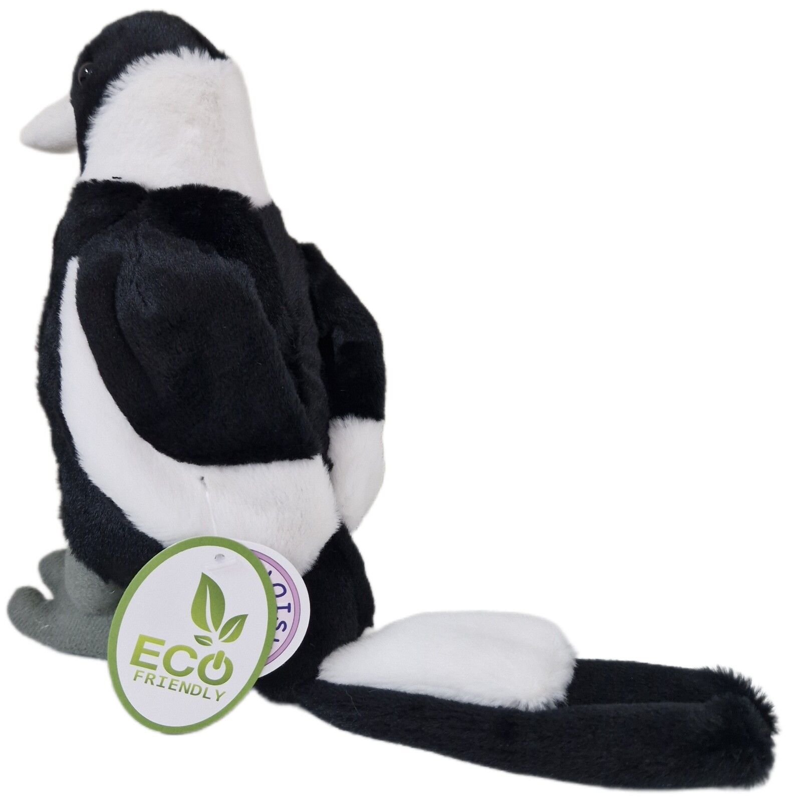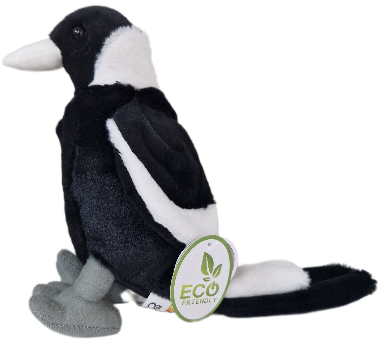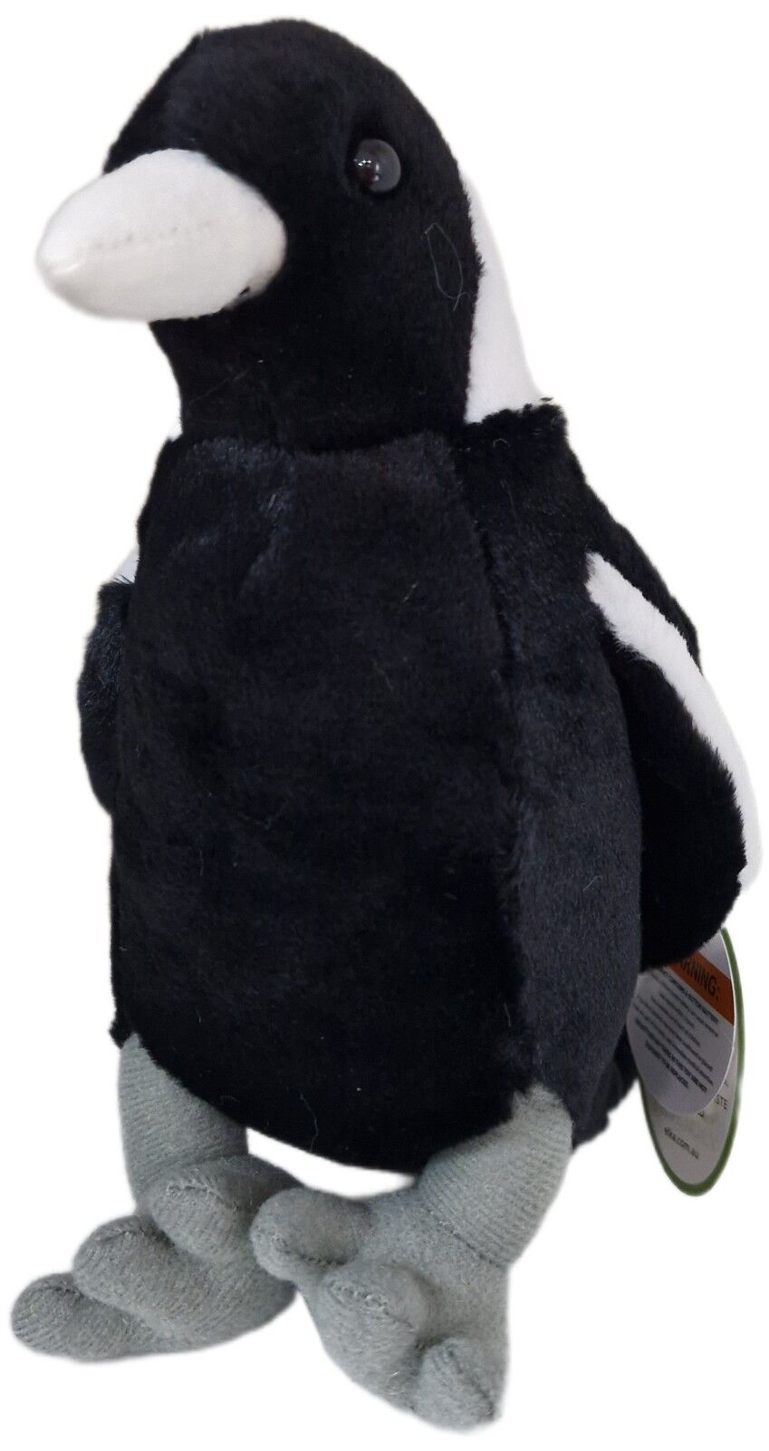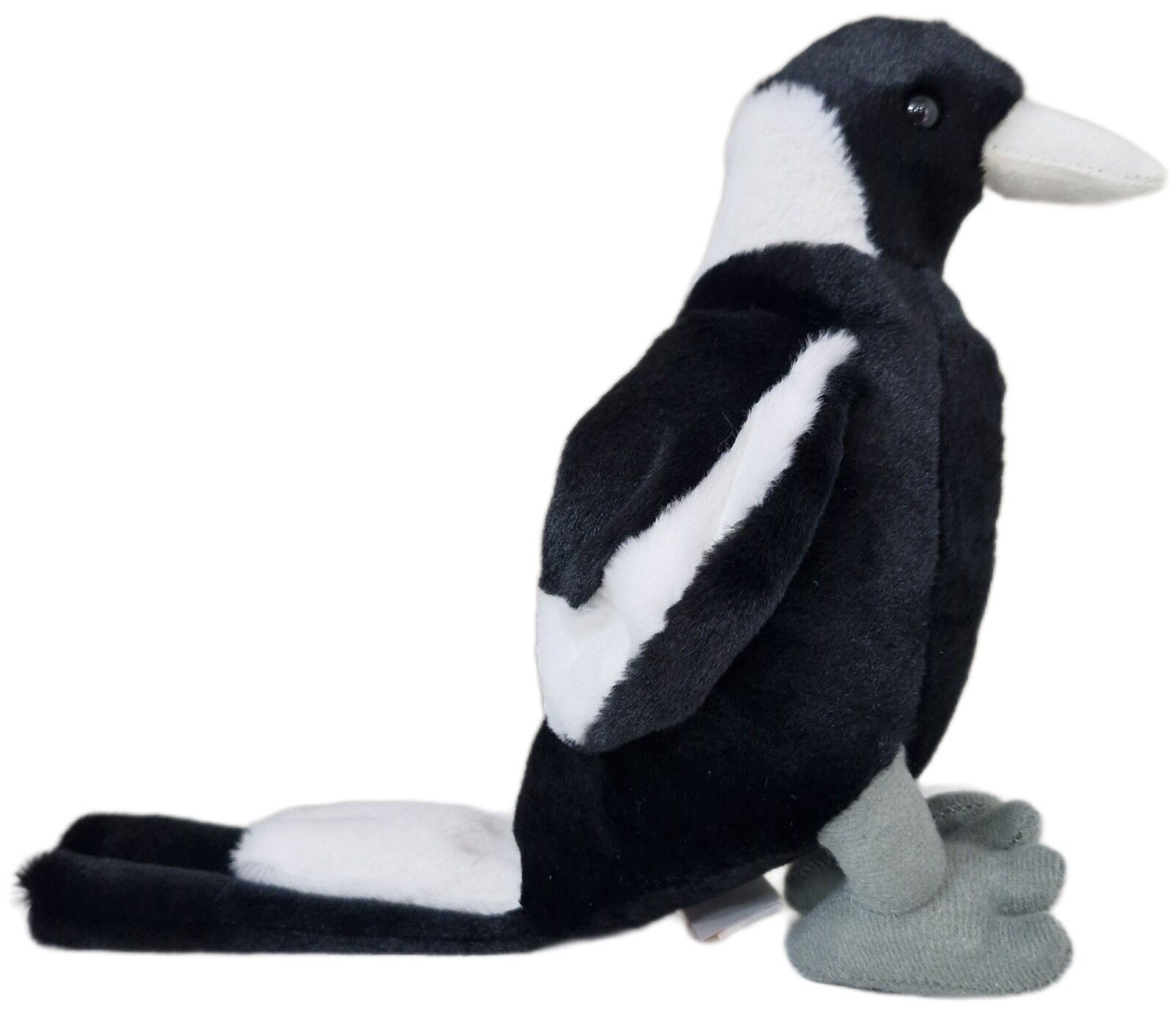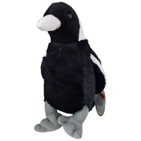 Beautiful soft plush toy, iconic Australian bird, the Magpie or Maggie with sound chip. Press the birds belly and listen to the sound this cute plush Magpie makes.