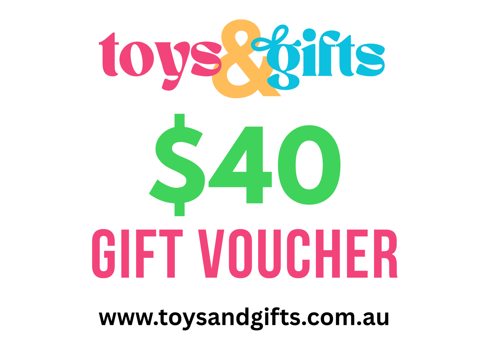 Gift Voucher (Gift Card) to the value of $40. Redeemable towards all items on the Toys and Gifts website.