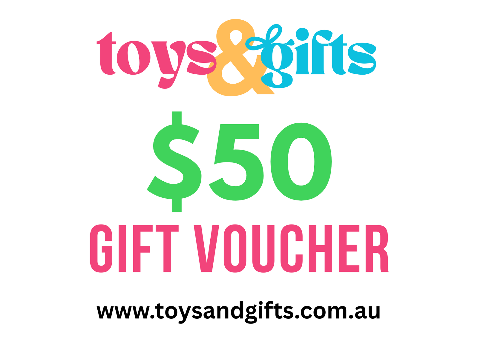 Gift Voucher (Gift Card) to the value of $50. Redeemable towards all items on the Toys and Gifts website.