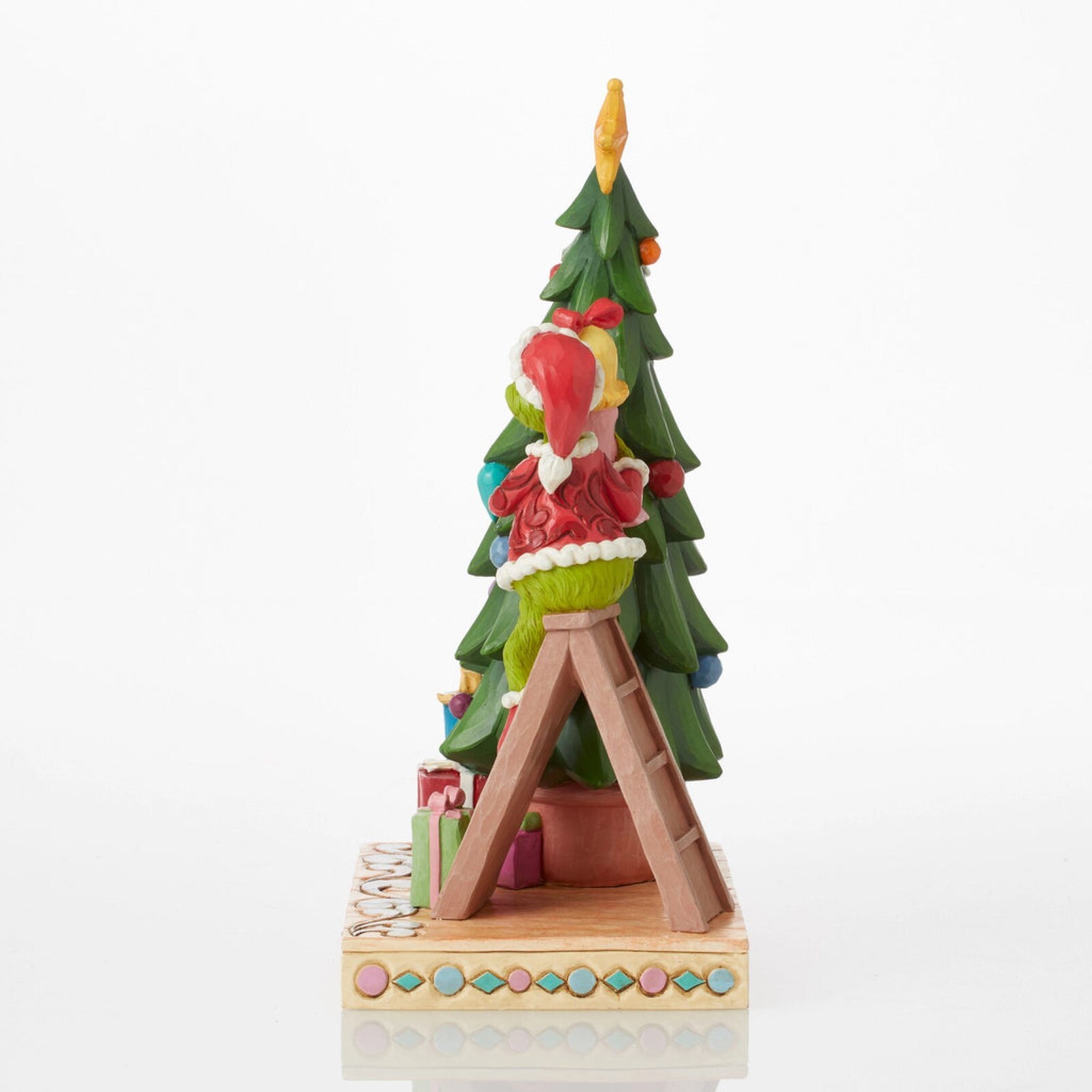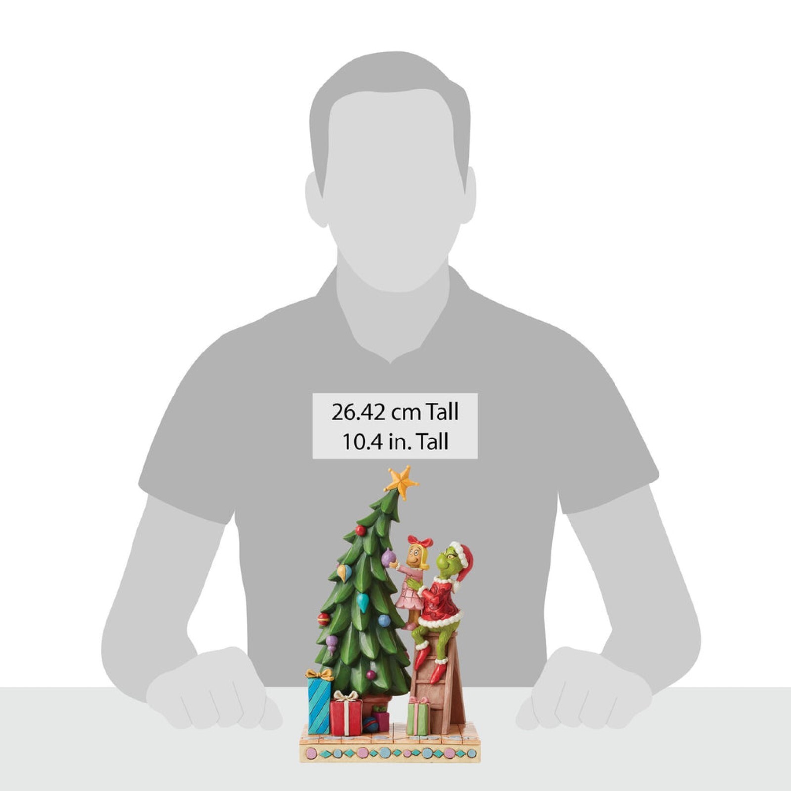 With a bigger heart, the Grinch turns over a new leaf to help instead of harm. In this heartwarming design by Jim Shore, the Grinch gives Cindy Lou Who a boost to decorate a Christmas tree. With a sincere smile, the holidays have grown brighter.