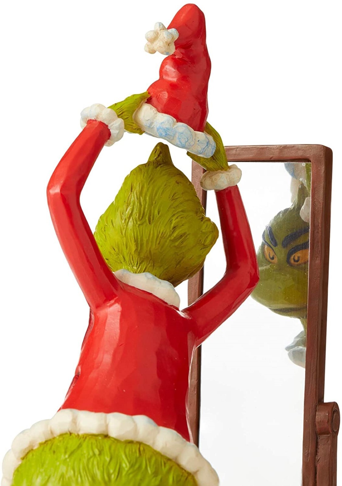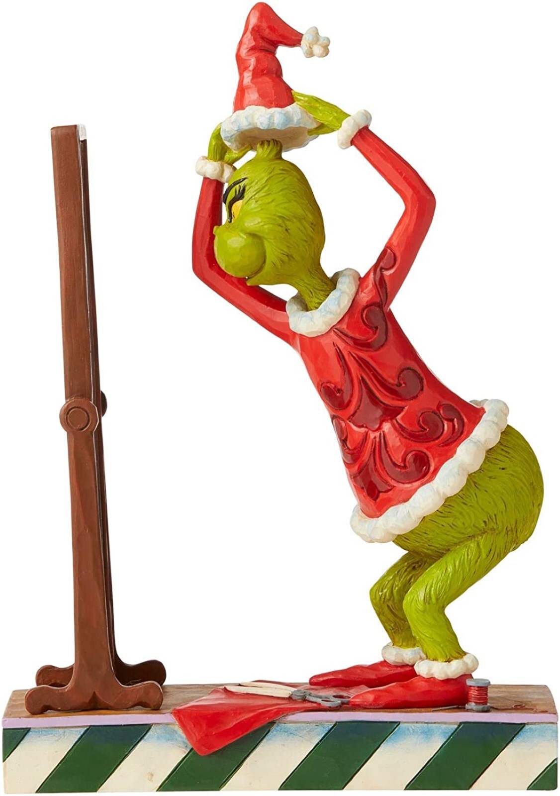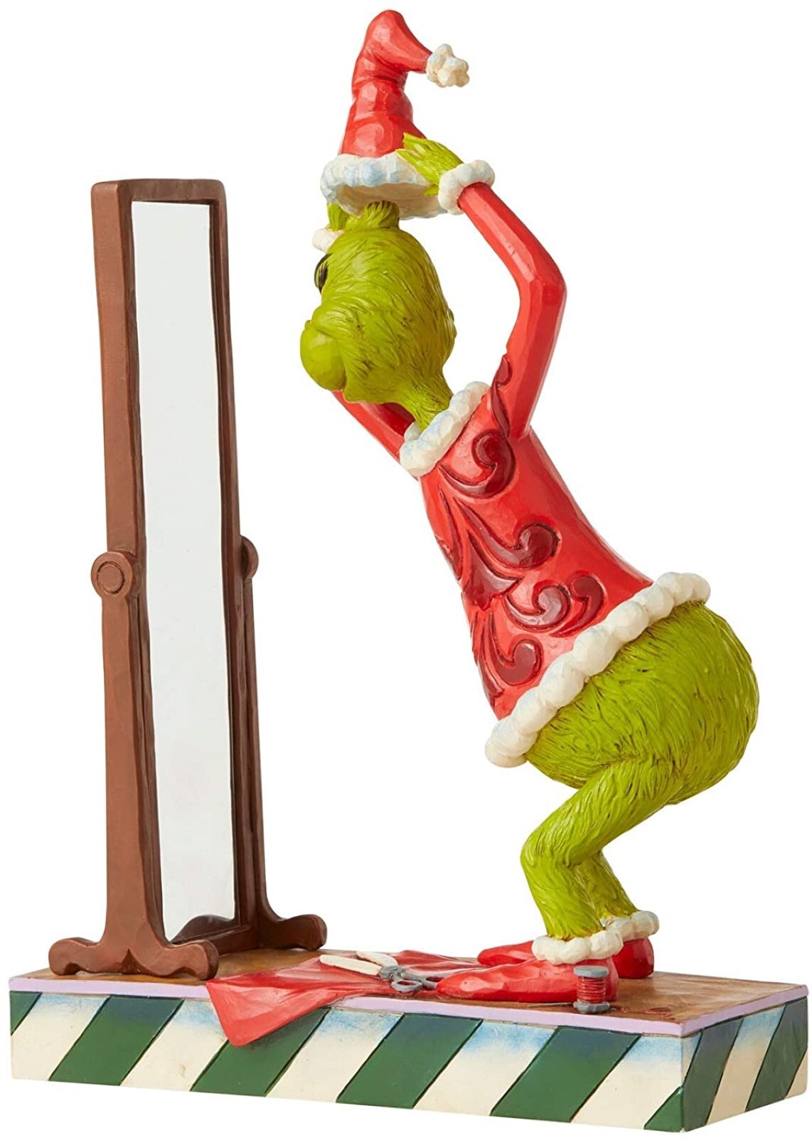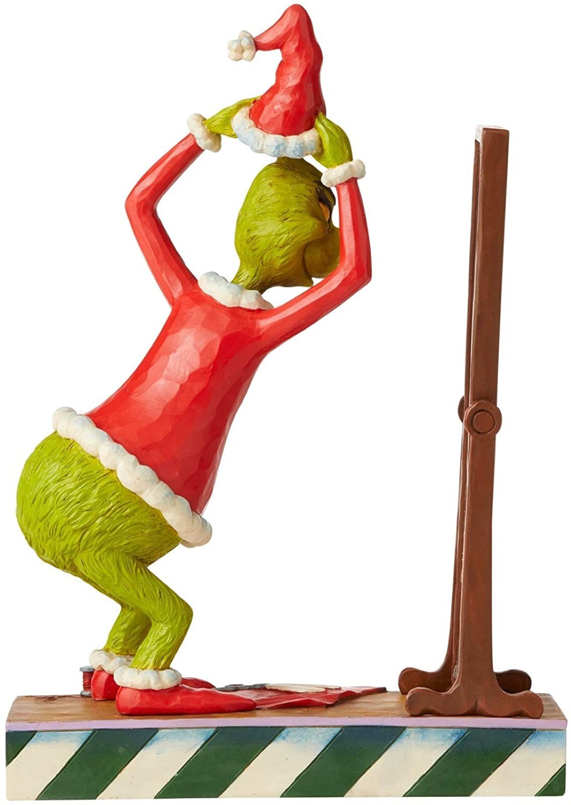 Grinch is the Christmas curmudgeon we fell in love with. He's mean and he's green, and he's always sneaking around with that mischievous grin. Place this Jim Shore figurine somewhere he can lurk, and admire as the grump warms your heart and home.