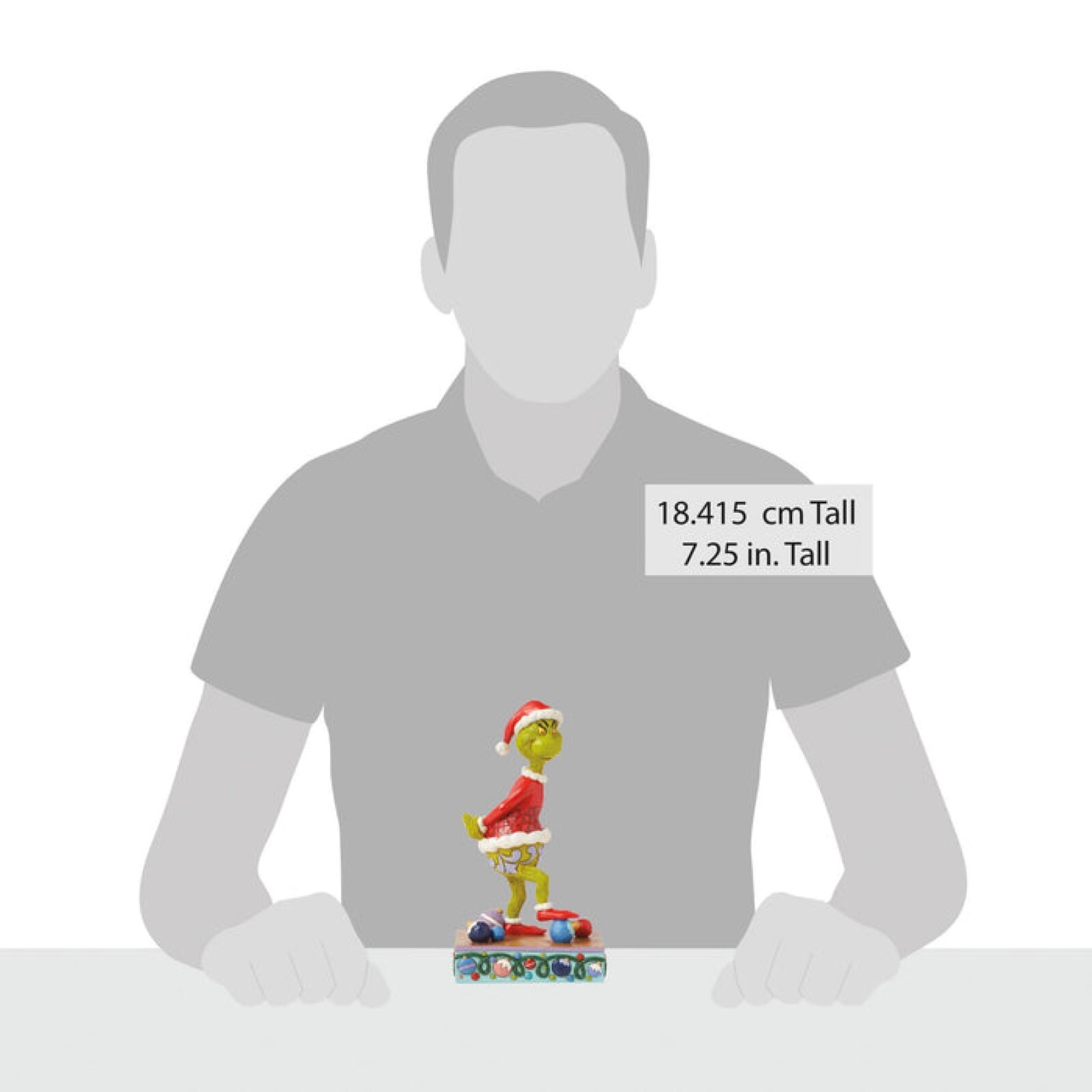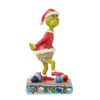 This Jim Shore designed creation features The Grinch dressed as Santa on a mission to steal Christmas. Squashing spirit, Grinch steps on ornaments with his iconic mischievous grin. The playful design makes a festive piece of holiday home decor.
