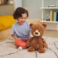 This adorable bear boasts super-soft chocolate-brown plush, a cream-colored muzzle, and faux suede nose with a charming expression. Knox's oversized paws keep him in a perfectly relaxed upright position, sitting tall yet looking eager for a squeeze.