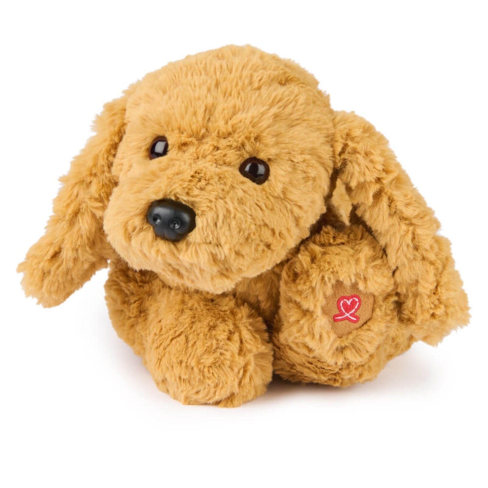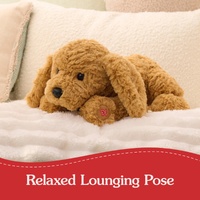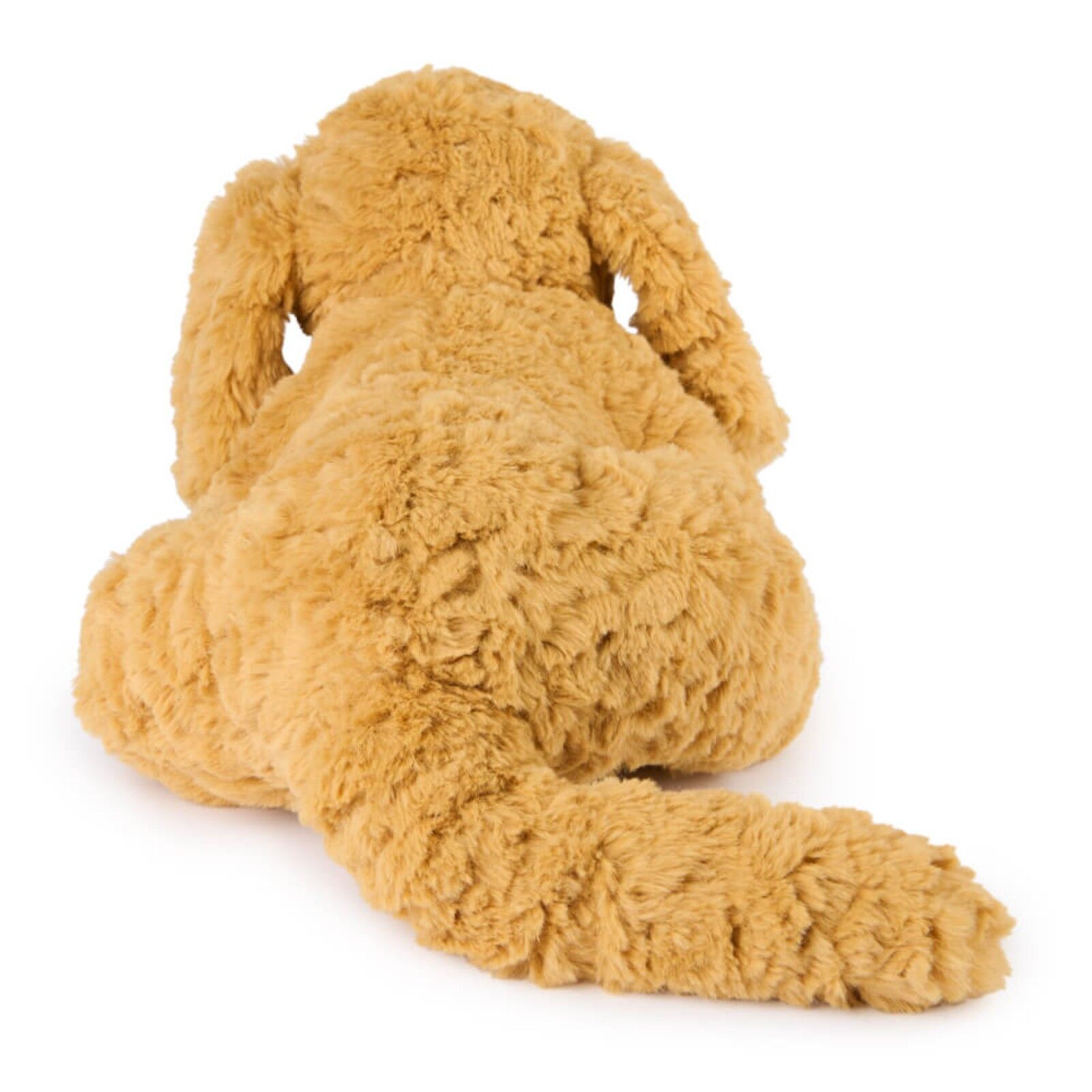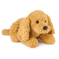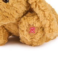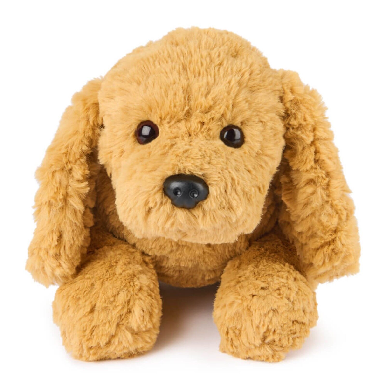 This adorable Labrador puppy plush features swirls of slightly shaggy, textured amber fur, long, floppy ears, and a relaxed position that makes him look ready for playtime or naptime!