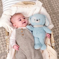 Introducing GUND's new line of first soft friends, sustainably sourced from 100% recycled materials! This sweet pale blue-coloured eco puppy from GUND is not only soft and cuddly, it is crafted from 100% recycled materials. Each friend is crafted with luxe, ultra-soft recycled plush, recycled thread including embroidery, plastic fibre fill and sustainable packaging. It's GUND's gift to future generations of cuddlers! Packaging is made from recycled materials - a paper hangtag & cord, recycled sewn in label, packaging in a post consumer polybags.