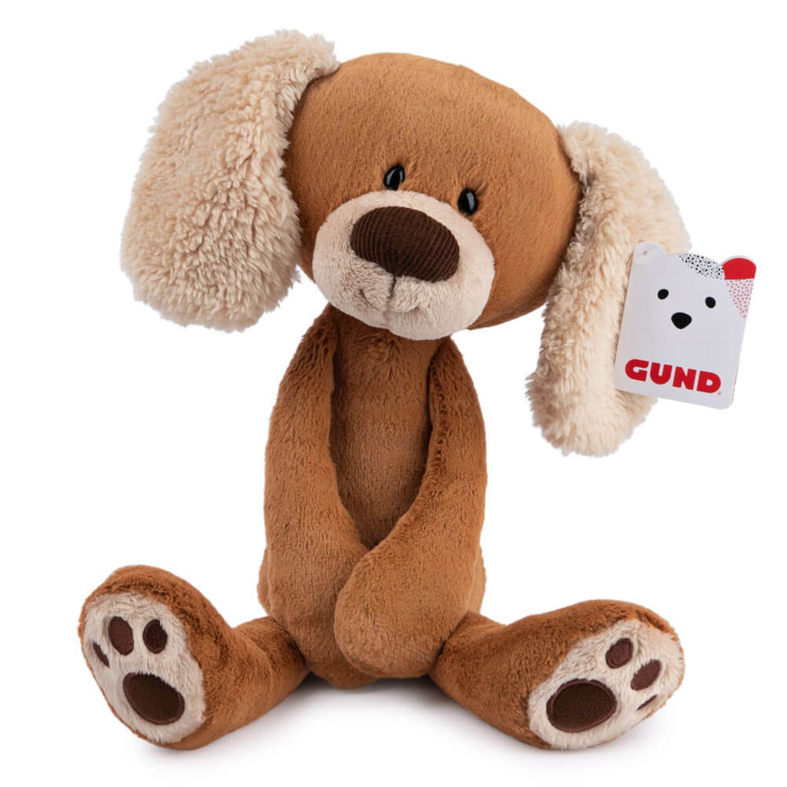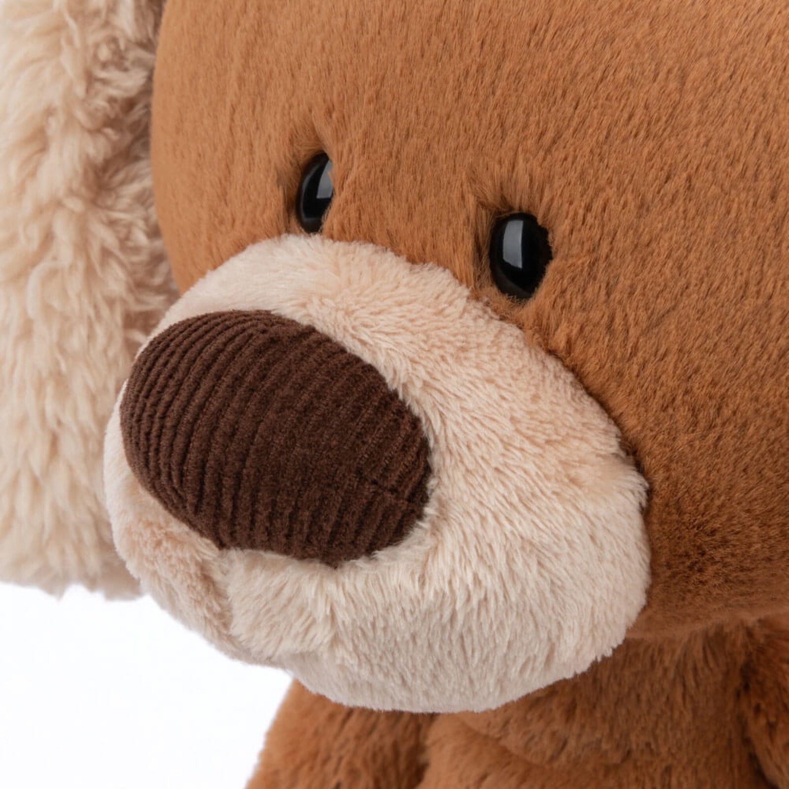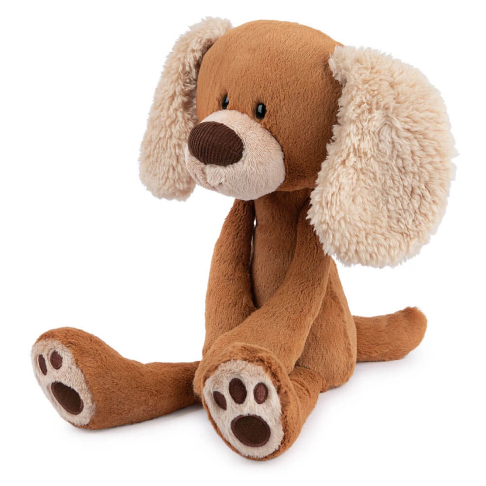 • Stuffed puppy with super-soft light brown plush fur and fluffy, floppy cream-coloured ears