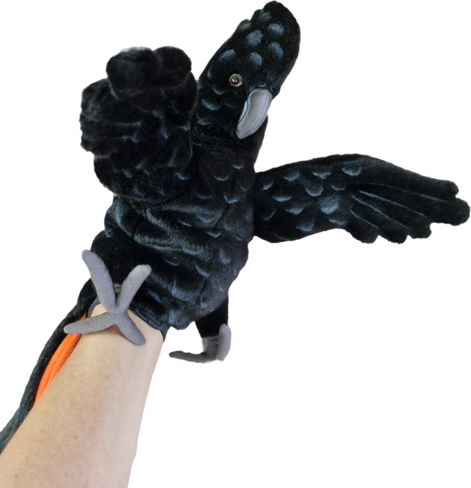Hansa Plush Hand Puppet - Bird Red Tailed Black Cockatoo