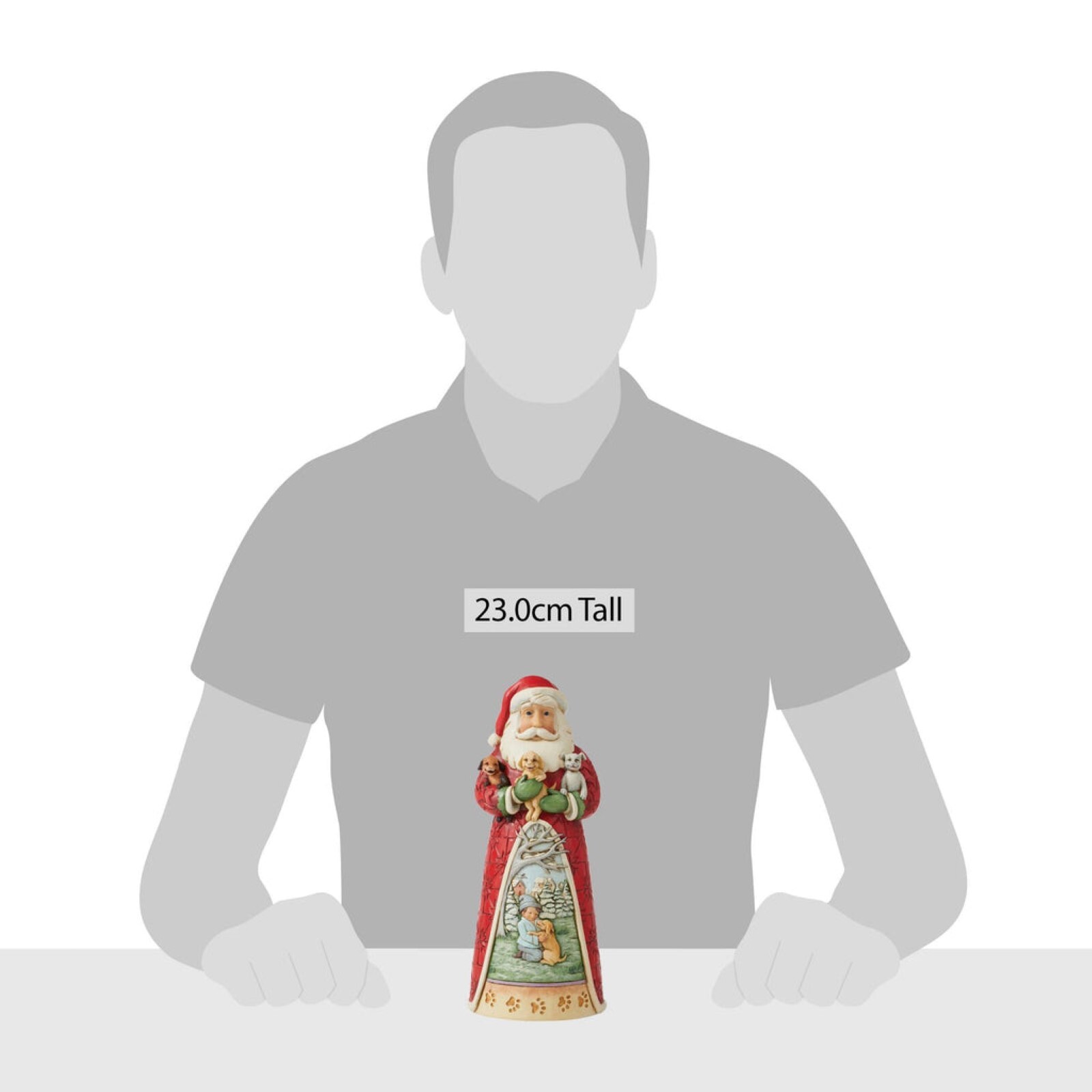 Santa knows toys can lose their appeal over the years. So this year, Santa brings a gift to last a lifetime in the shape of furry friendship! With three pups in hand, Santa's patterned cloak reveals a loving scene of puppy embrace with paw prints.