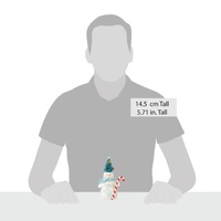 This giddy little snowman wears a blue scarf and rosemaling with a smile. Holding a candy cane, he's dressed for the holidays in an ornamented sisal Christmas tree hat. With rosy cheeks, this pint sized snowman by Jim Shore celebrates the season.