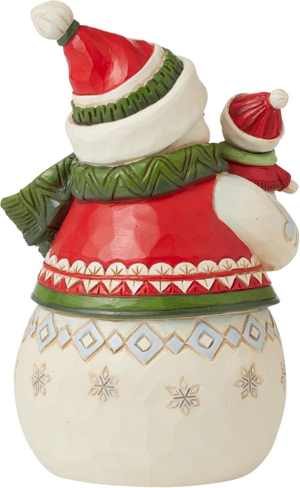 This adorable pint figurine by Jim Shore features a snowmom and snowbaby in loving embrace. With Santa hats, vests, and scarves, the pair are as dashing as they are darling. Celebrate the season with Jim Shore with rosemaling and snowflakes.