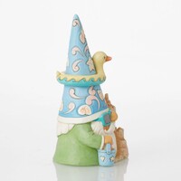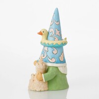 Building a sandcastle, this cheerful coastal gnome creates a masterpiece on the shore. He wears sunglasses and a hat patterned in shells and rosemaling. A duckie floatie sits atop the gnome's hat with playful poise in this charming Jim Shore bust.