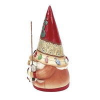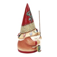 No one knows gnomes like Jim Shore! A master craftsman of the playful guardians, the beloved artist creates a new addition to his growing collection. This fisherman gnome wears lures on his hat as he carries a pole and a freshly caught fish.