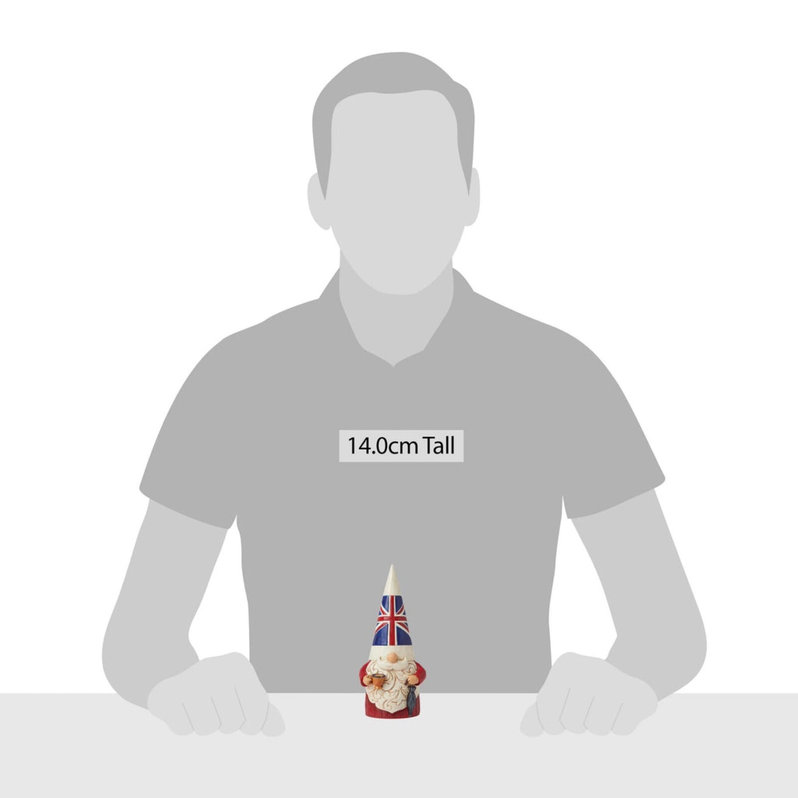 Jim Shore's Gnomes Around the World collection is a whimsical celebration of symbols and customs from nations near and far. The British Gnome holds a jaunty umbrella and cup of tea while wearing a hat decorated with the Union Jack.