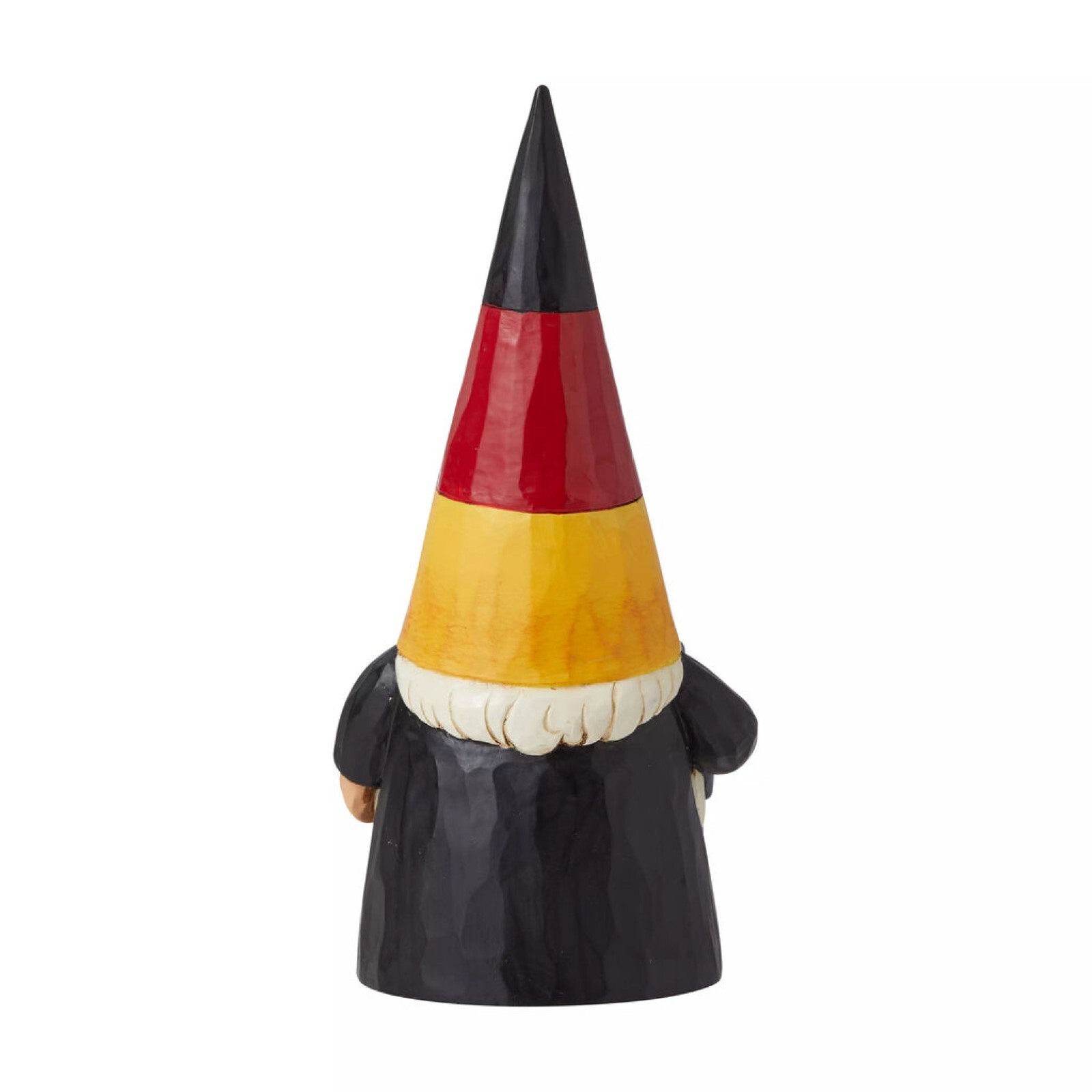 Jim Shore's Gnomes Around the World collection is a whimsical celebration of symbols and customs from nations near and far. The German Gnome holds a tall stein of Octoberfest beer while wearing a hat decorated in colors of the German flag.