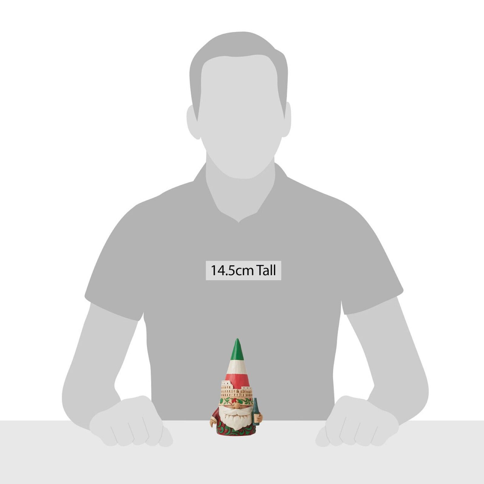 No one knows gnomes like Jim Shore! Donning the colors of Italy, this bearded gnome wears his country's flag on his hat, fitted by the ruins of the Colosseum. Holding a bottle of wine he chants Viva l'Italia between sips. Celebrate Italy with humor.