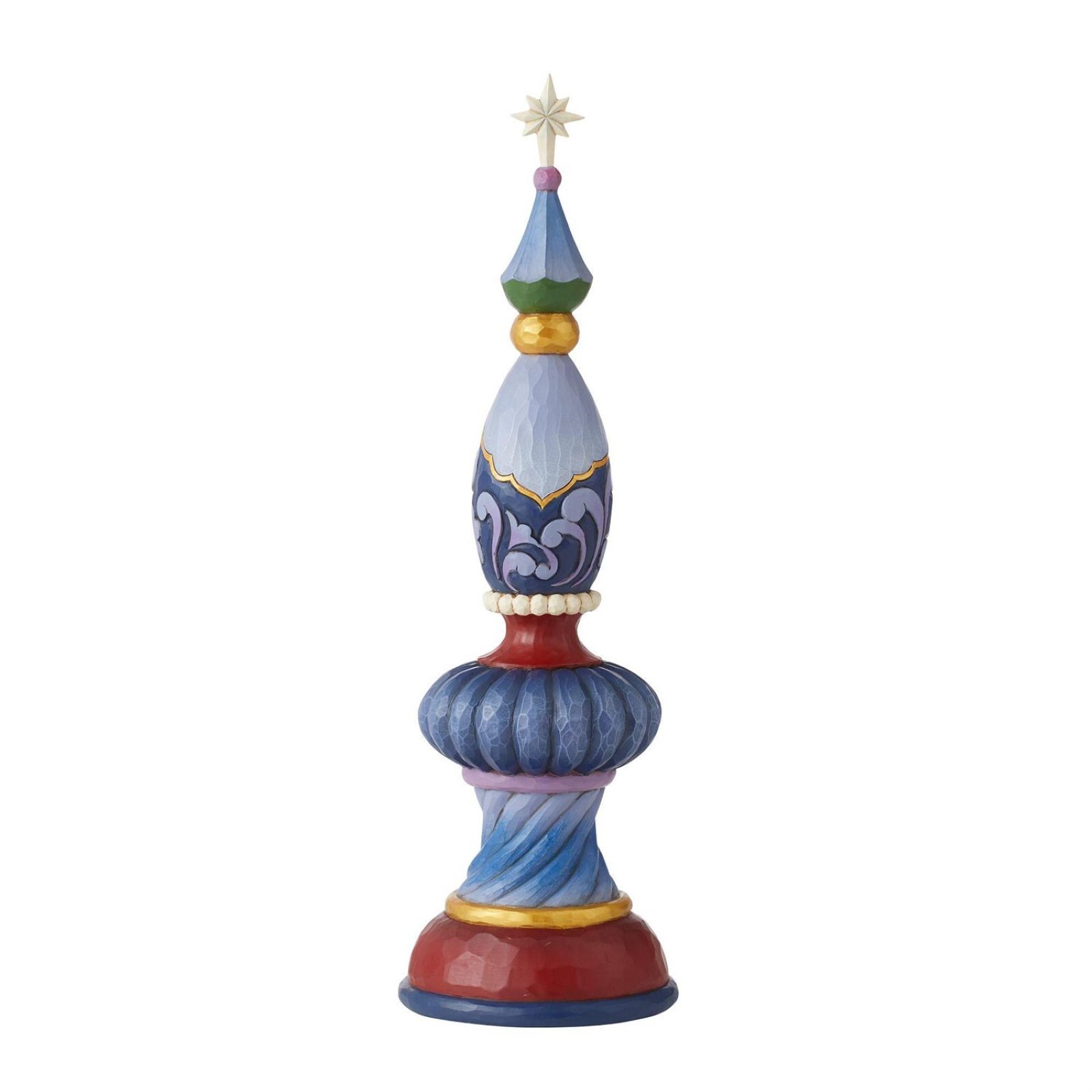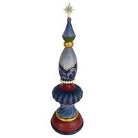 This  finial makes a eye-catching center piece with a reverent salute to the very first Christmas. With enchanting shape and color the finial stands 29cm in height and is topped with a star. One of the center pieces features a carved holy family.