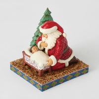 - Jim Shore Heartwood Creek "Christmas Miracle" Santa Collection Santa Kneeling over Baby Jesus Figurine