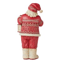 Wearing fuzzy boots, Nordic print pants and sweater, this charming Santa takes to the snowy mountains of Scandinavia with a smile and star patterned lantern. Standing 10", this contrast coloured Santa makes an eye catching addition to your holiday.