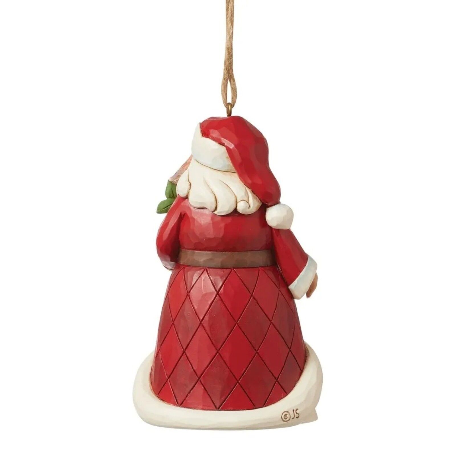 This charming Worldwide Event ornament by Jim Shore celebrates the twelve days of Christmas with a decorated Santa Claus. With patterned robes and a smile, Santa holds a pear tree branch in his hand. A partridge perches atop the branch.