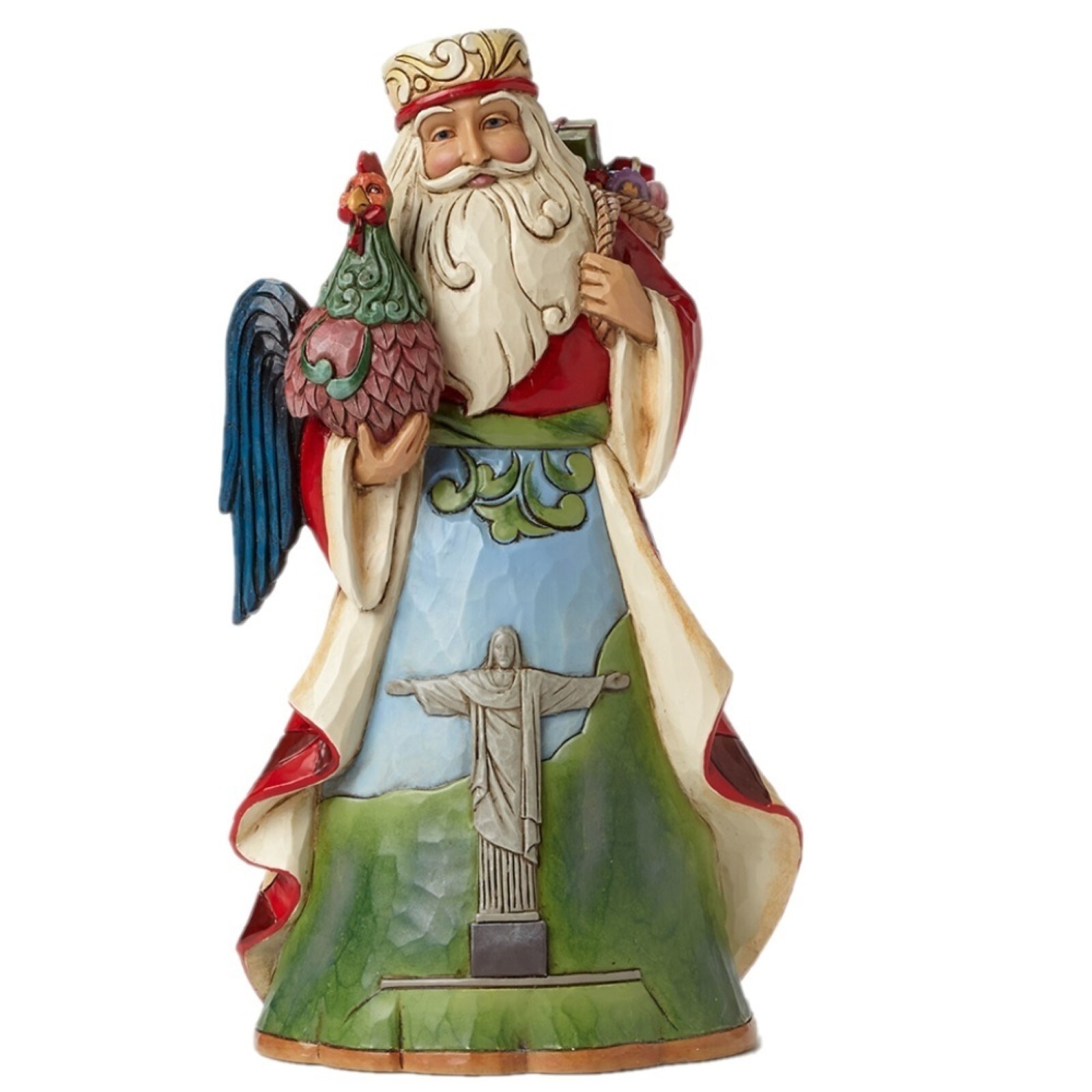 The Brazilian Santa features a rooster, a symbol of the coming new Christmas day and a scene of the famous Christ the Redeemer statue overlooking Rio.
