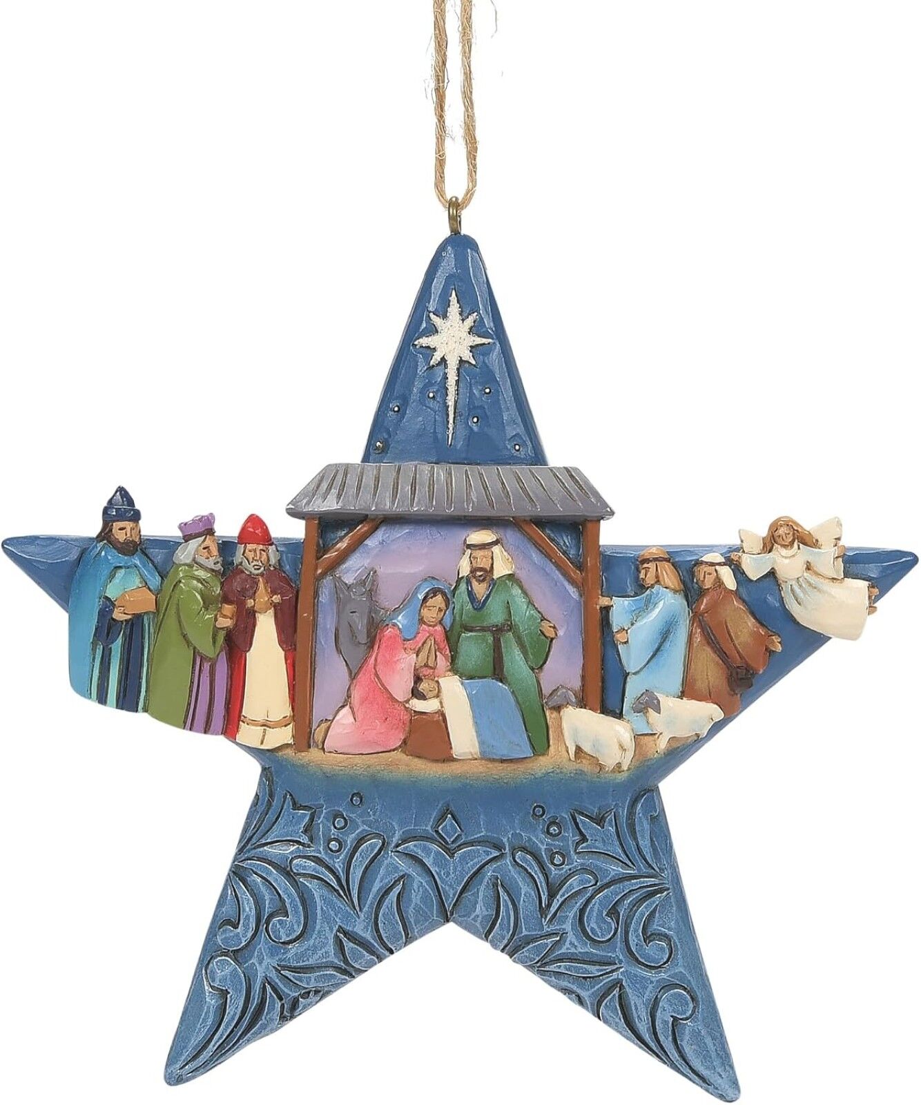 This beautiful blue Jim Shore Nativity star ornament reminds us of the real reason for the season. Featuring a delicate manger scene, wise men, the Holy family, shepherds and Christmas angel of the First Noel are all represented in exquisite detail..