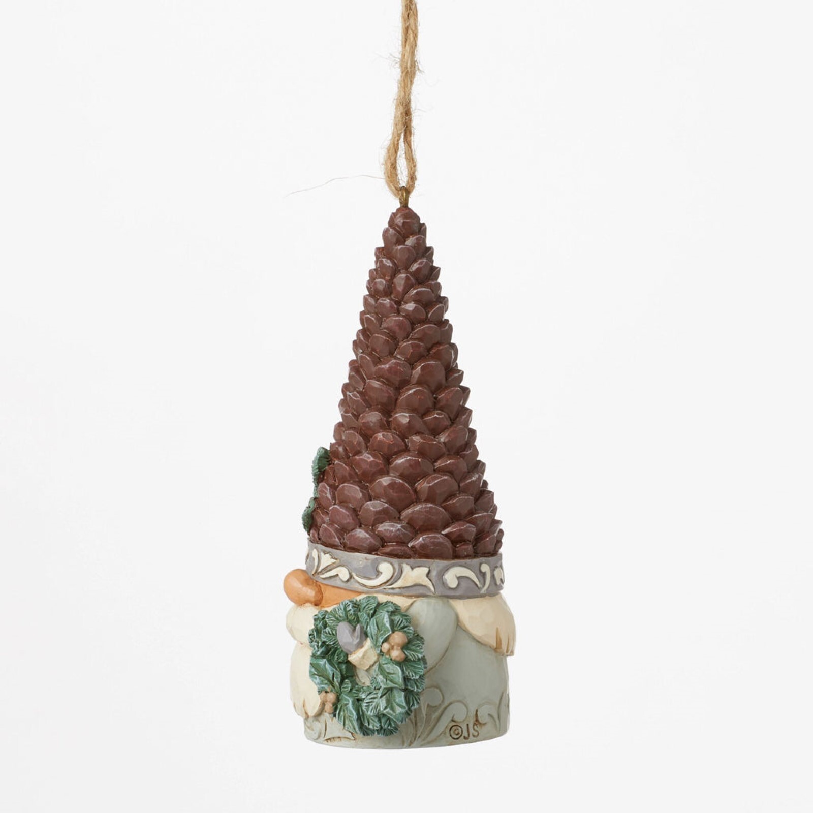 • Jim Shore Heartwood Creek White Woodland Collection Gnome with Pinecone Hat Hanging Ornament