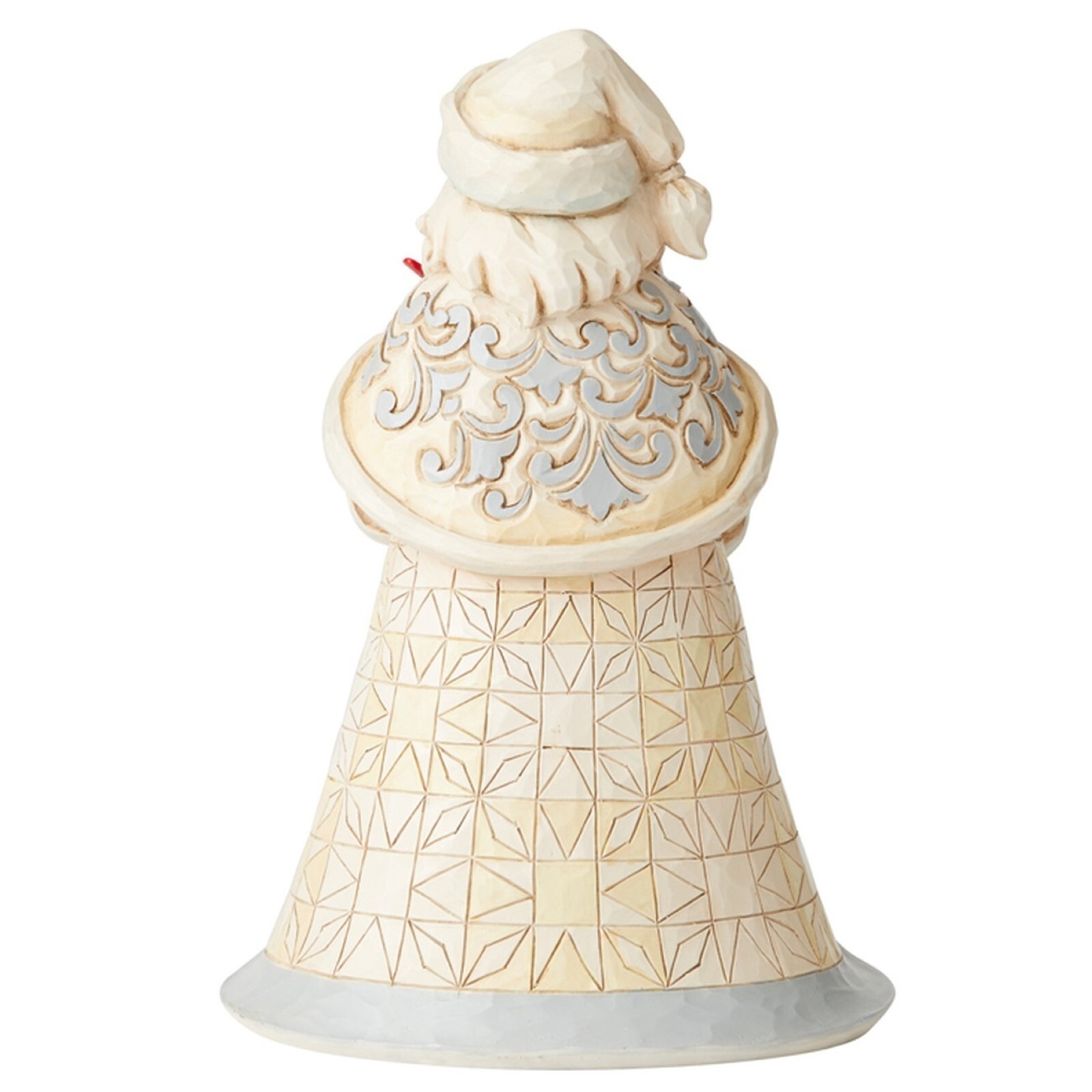 This delightful White Woodland Santa has a pair of colorful Cardinals perched on his holiday wreath. Hand crafted in enchanting detail, this decorative scene features a splash of bright red color on a subtle palette of muted tones and wintry hues.