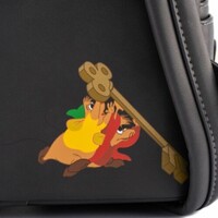 The key to a villainous outfit is the accessories. The Loungefly Disney Cinderella Evil Stepmother and Stepsisters Villains Scene Mini Backpack is here to rule the roost. Through a golden keyhole you’ll find Cinderella, while her stepmother and stepsisters loom over the view with unapproving looks. On the back you’ll find Jaq and Gus carrying the key that may set Cinderella free.