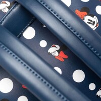 This all-over print design features Minnie’s face in delighted expressions because she’s surrounded by polka dots! While Minnie has always been quite the fashionista and loves to wear all kinds of clothing, she is typically seen wearing an oversized hair bow, heels and a polka dot print dress. This backpack perfectly showcases all the signature traits of Minnie, right down to her bubbly personality!