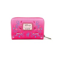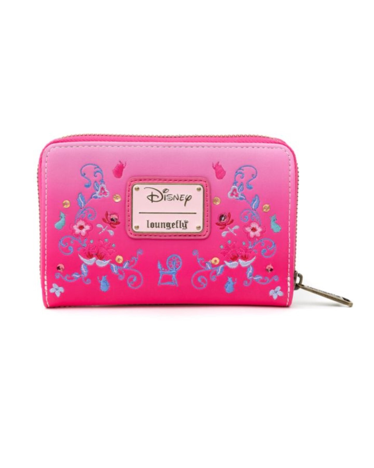 This stunning pink accessory captures Aurora in the arms of her Prince Phillip on the front, dancing among the clouds in a dream-like scene. Silhouettes of birds pour in on the beautiful scene and is framed by gorgeous applique, while the back is adorned with beautifully embroidered flowers, foliage and sequins.