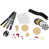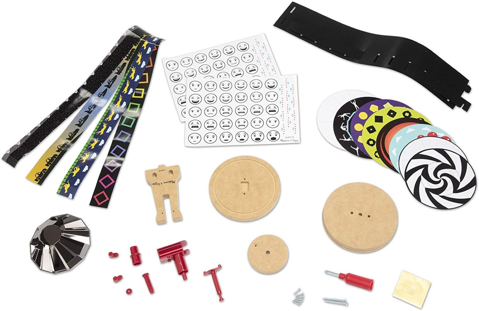Melissa & Doug Innovation Academy kid-powered projects encourage open-ended hands-on exploration and experimentation - - its STEM learning made fun! With Animation Scope, kids can design a device that spins to create dozens of animations and optical illusions, while exploring the principles of light and optics! Easy-to-follow illustrated instructions help kids eight and older build their project independently. Learn how to trick the brain by experimenting with moving pictures and optical effects! The included Innovation Booklet enhances interactive learning long after the project is assembled.