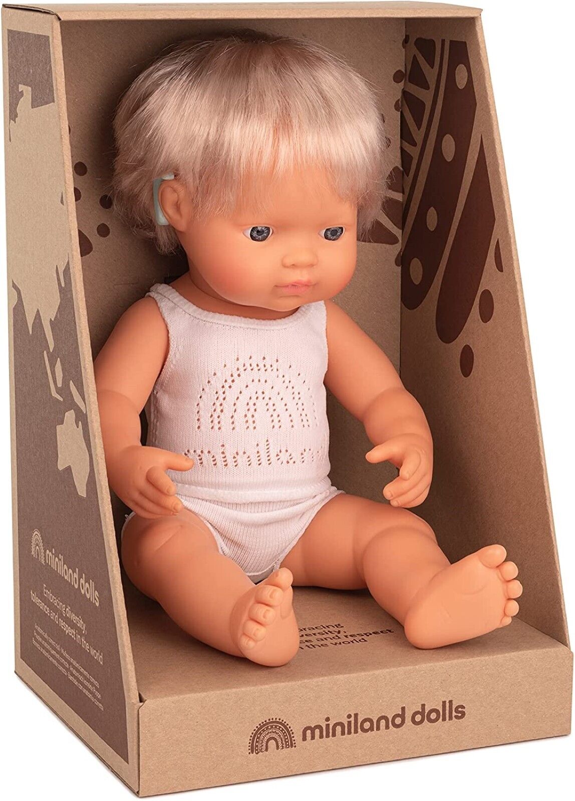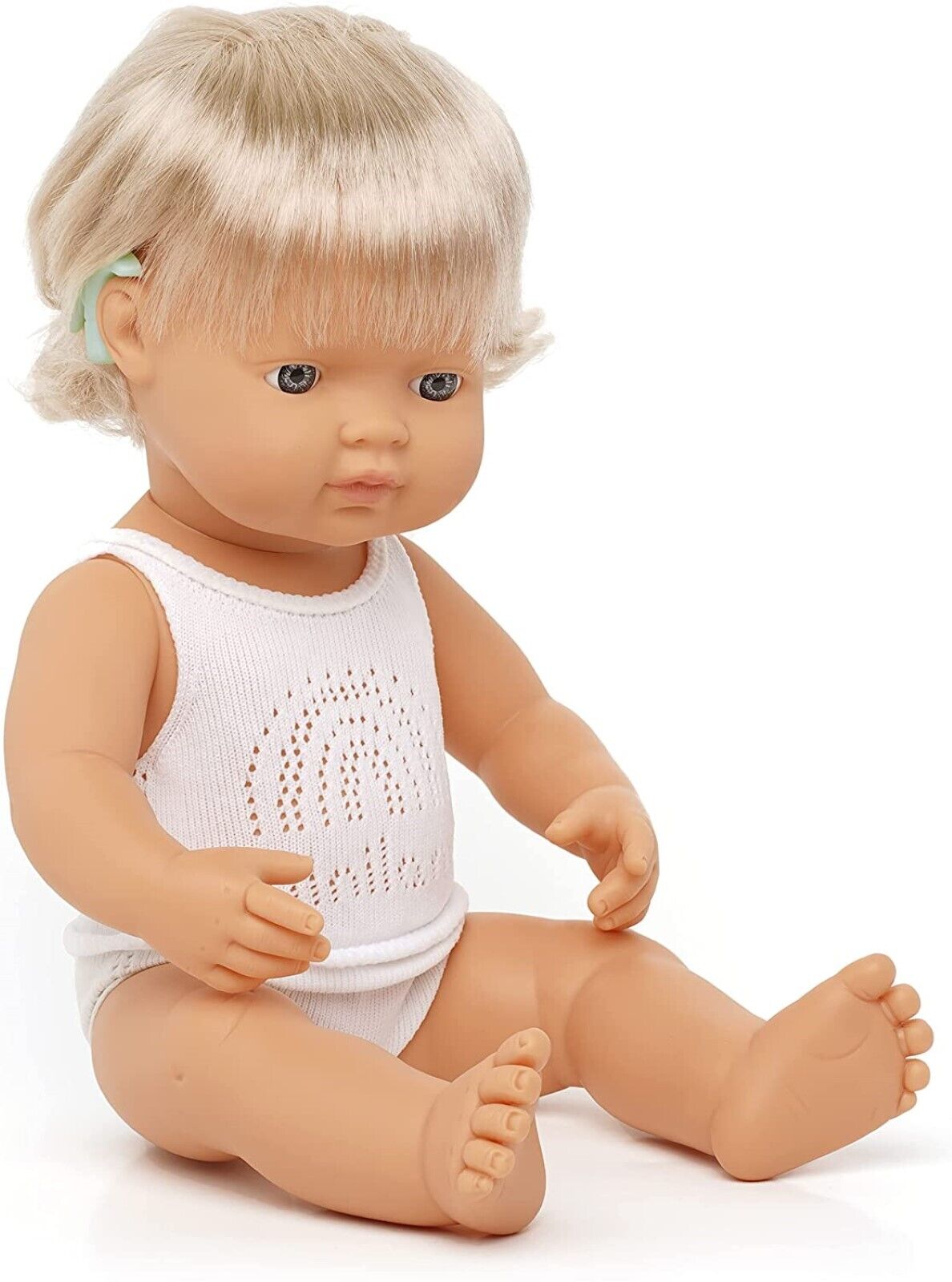 Miniland Doll Caucasian Blonde Girl with Hearing Aid 38cm