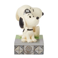 This enchanting Jim Shore bust features two timeless iterations of Snoopy standing back to back. One Snoopy embodies the classic 1950s style, while the other represents the updated Snoopy of today, showcasing the evolution of the beloved character.