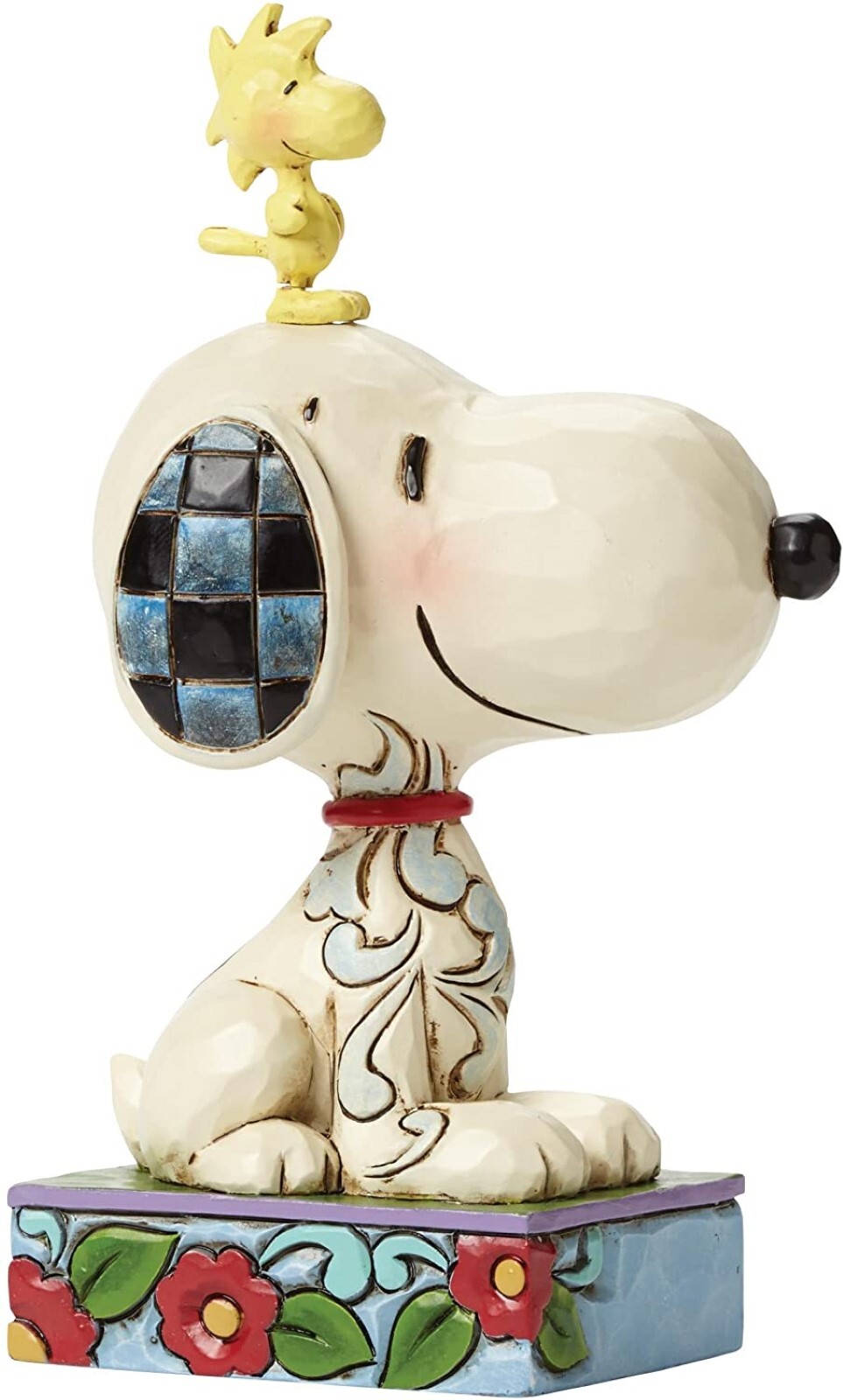 Jim Shore's Personality Poses are colorful creations that capture the essence of a character in a single figurine. This handcrafted design features Snoopy and his best friend, Woodstock, perfectly happy and in sync, just as they are in the beloved comic.