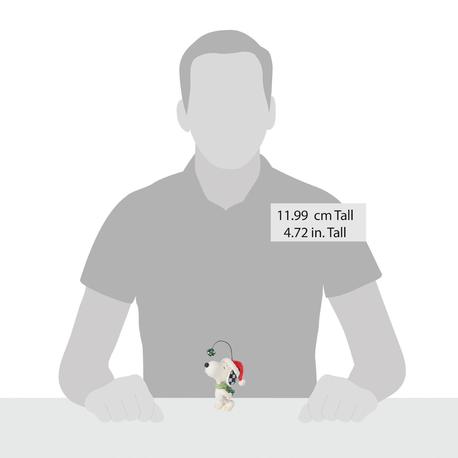 This adorable Peanuts statuette from Jim Shore features Snoopy ready for a kiss! Holding mistletoe over his head, the pup is puckered up for a holiday peck. Wearing a Santa hat and patterned scarf, Snoopy hopes to steal a smooch from you!