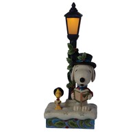 • Jim Shore Peanuts Collection- Snoopy & Woodstock next to Lit Lamp Post
