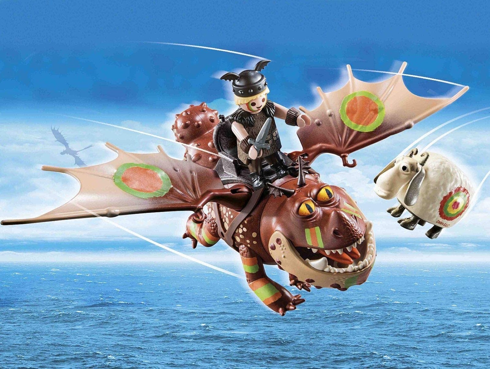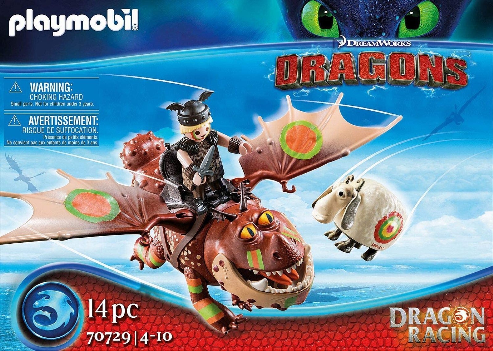 The playset includes Viking Fishlegs and dragon lady Meatlug in racing look, a tossing sheep, a saddle and other great extras.