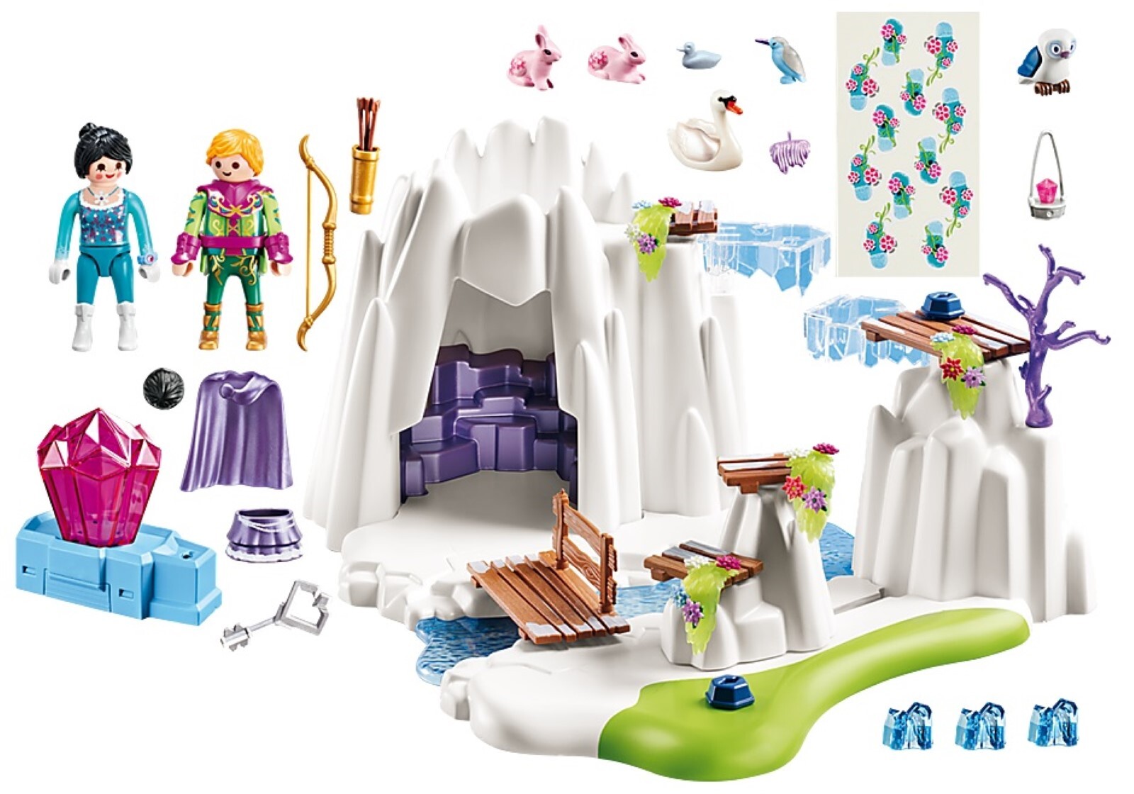 Set includes winter princess, springtime Prince, winter landscape, illuminating crystal, magic key, small ice crystals, rabbits, Swan, owl, bow and arrows, decorating stickers, and many more accessories.