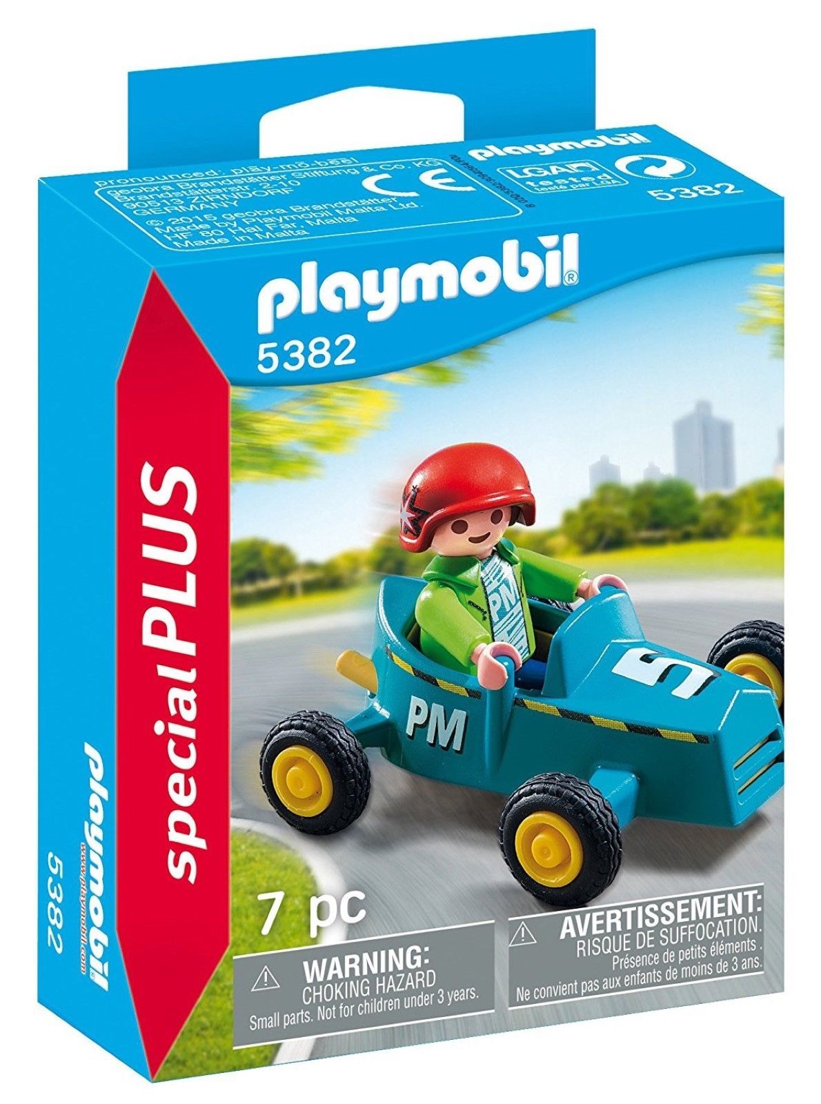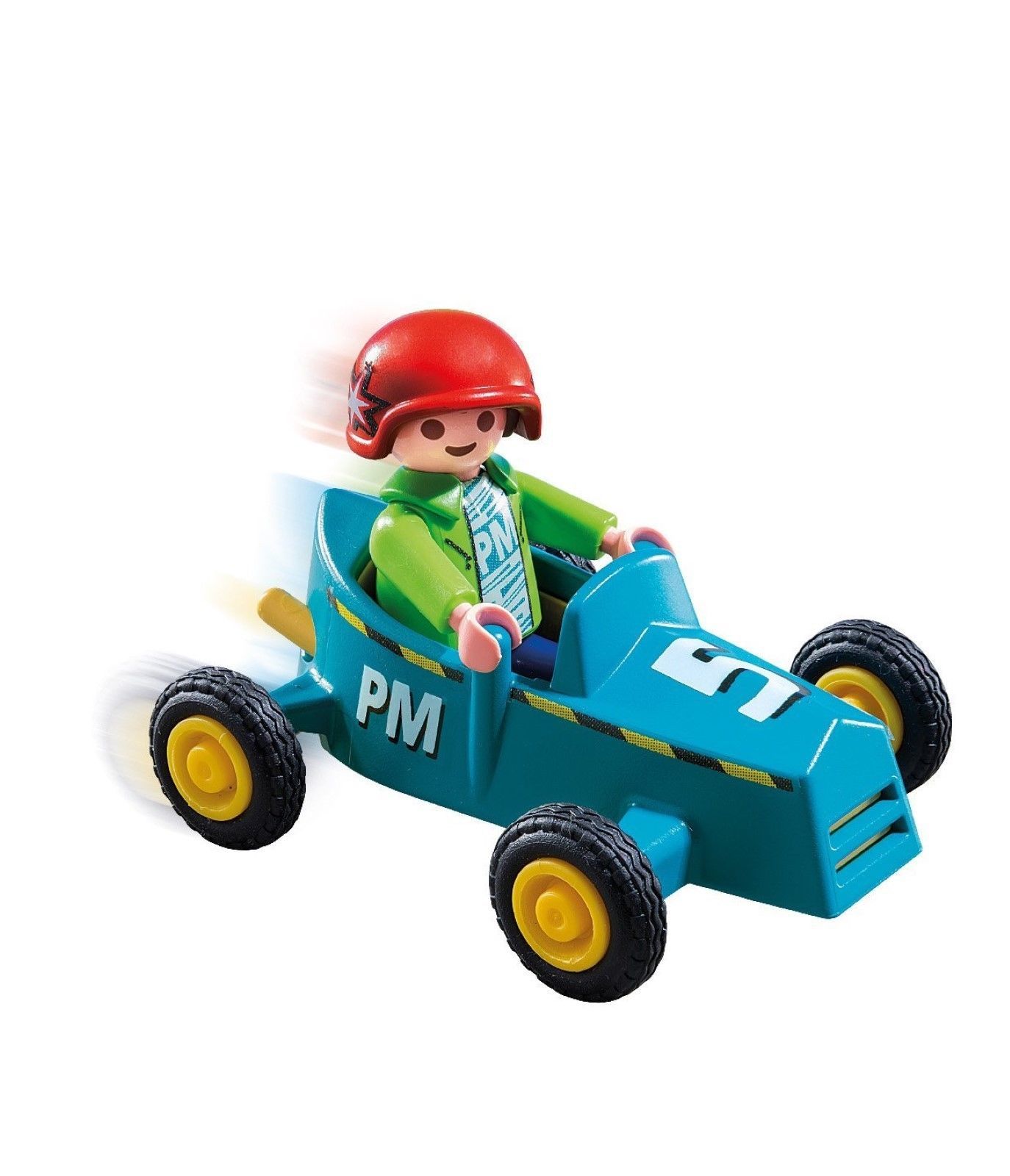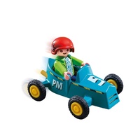 Race around the track with the Boy with Go-Kart. Play with this set on its own or combine it with any other PLAYMOBIL set.