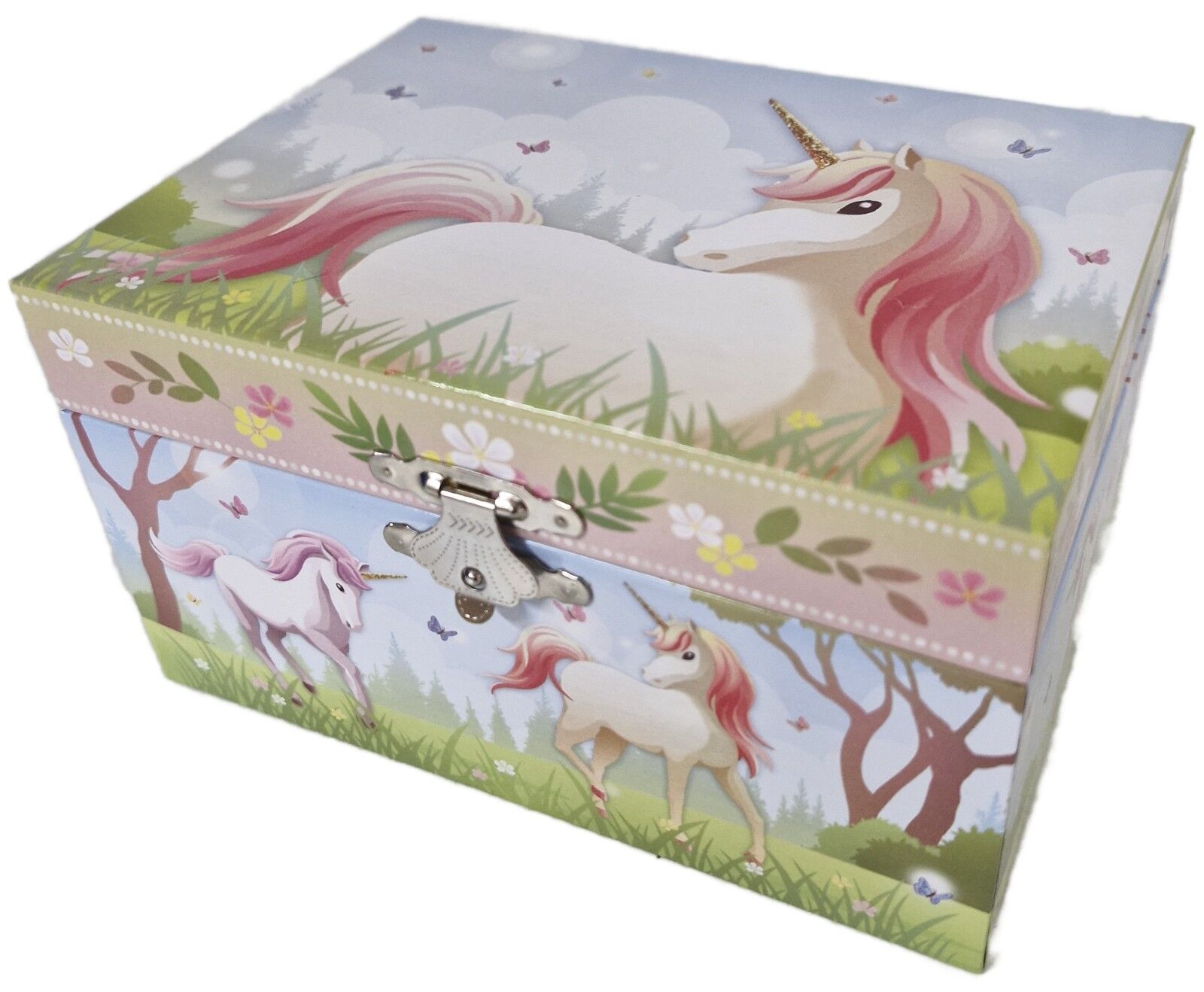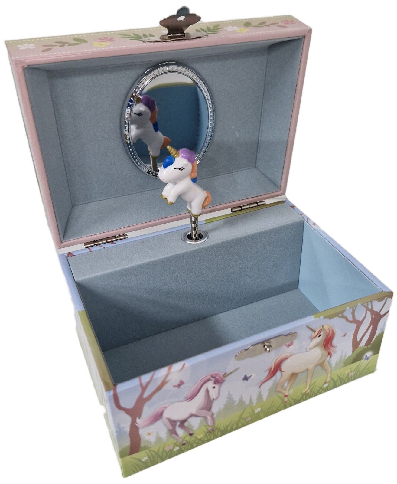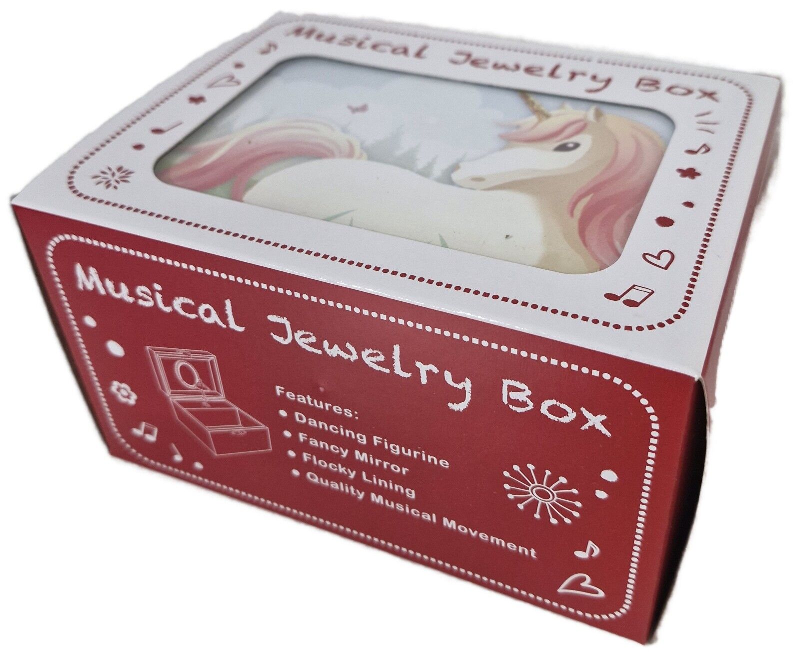 The musical jewellery box has a flocked inner lining and a mirror under the lid.