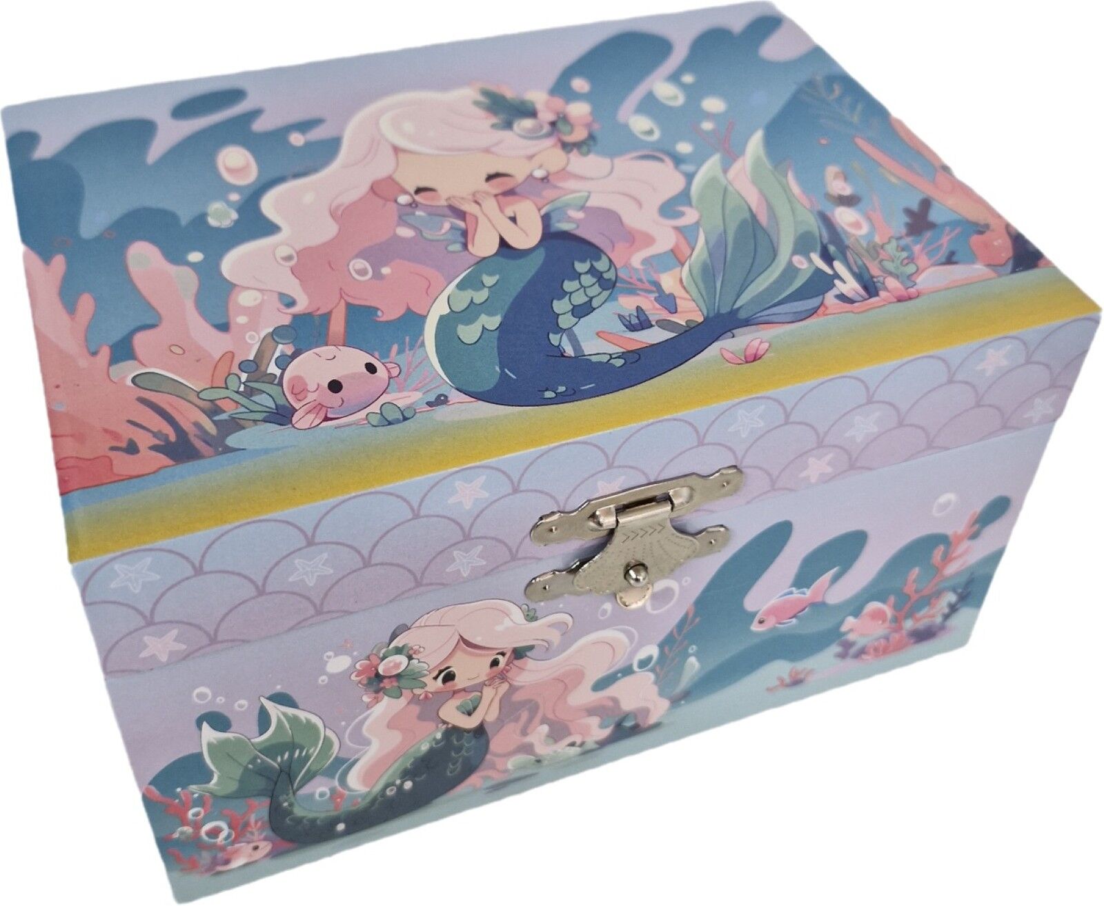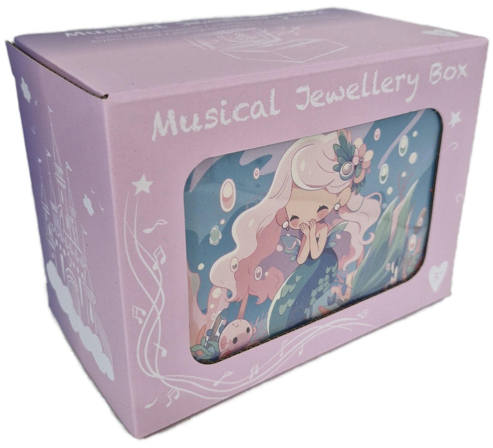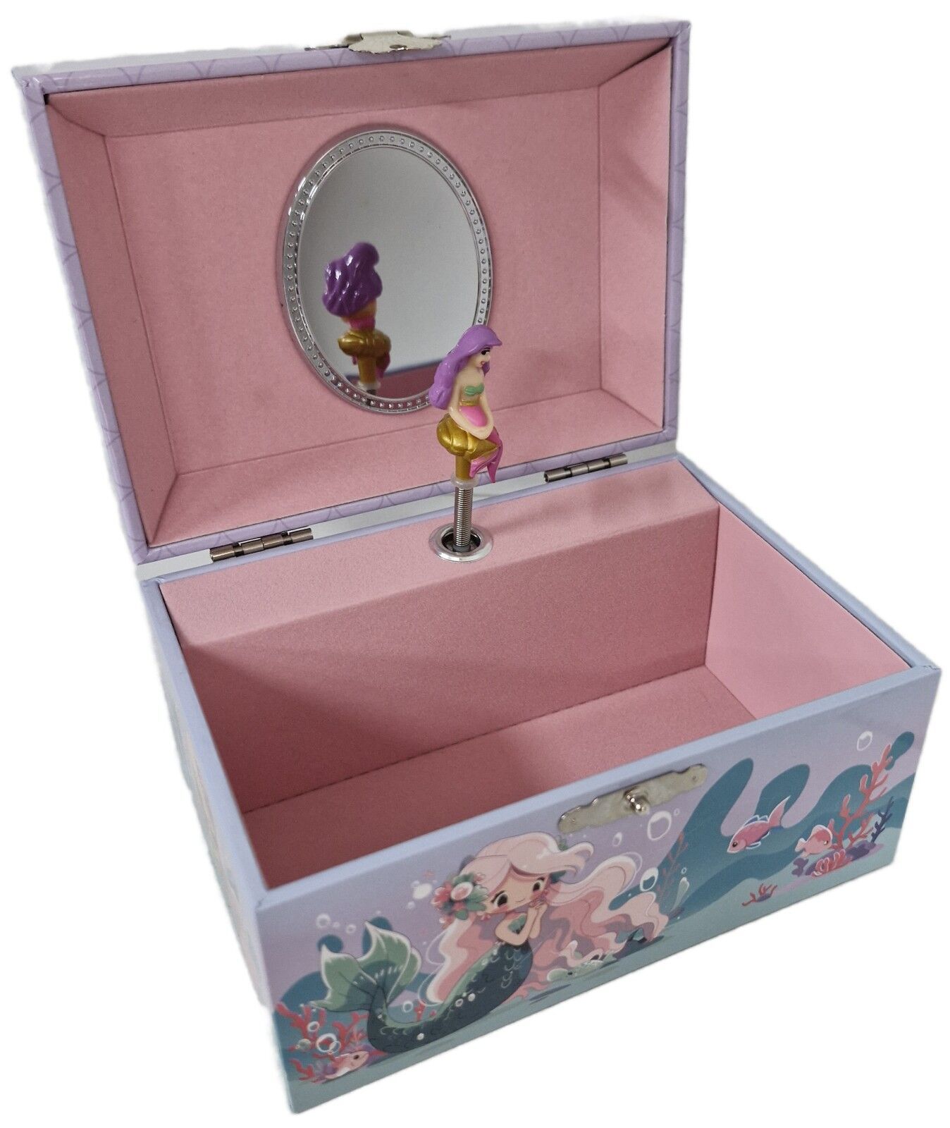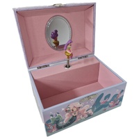 The musical jewellery box has a flocked inner lining and a mirror under the lid.