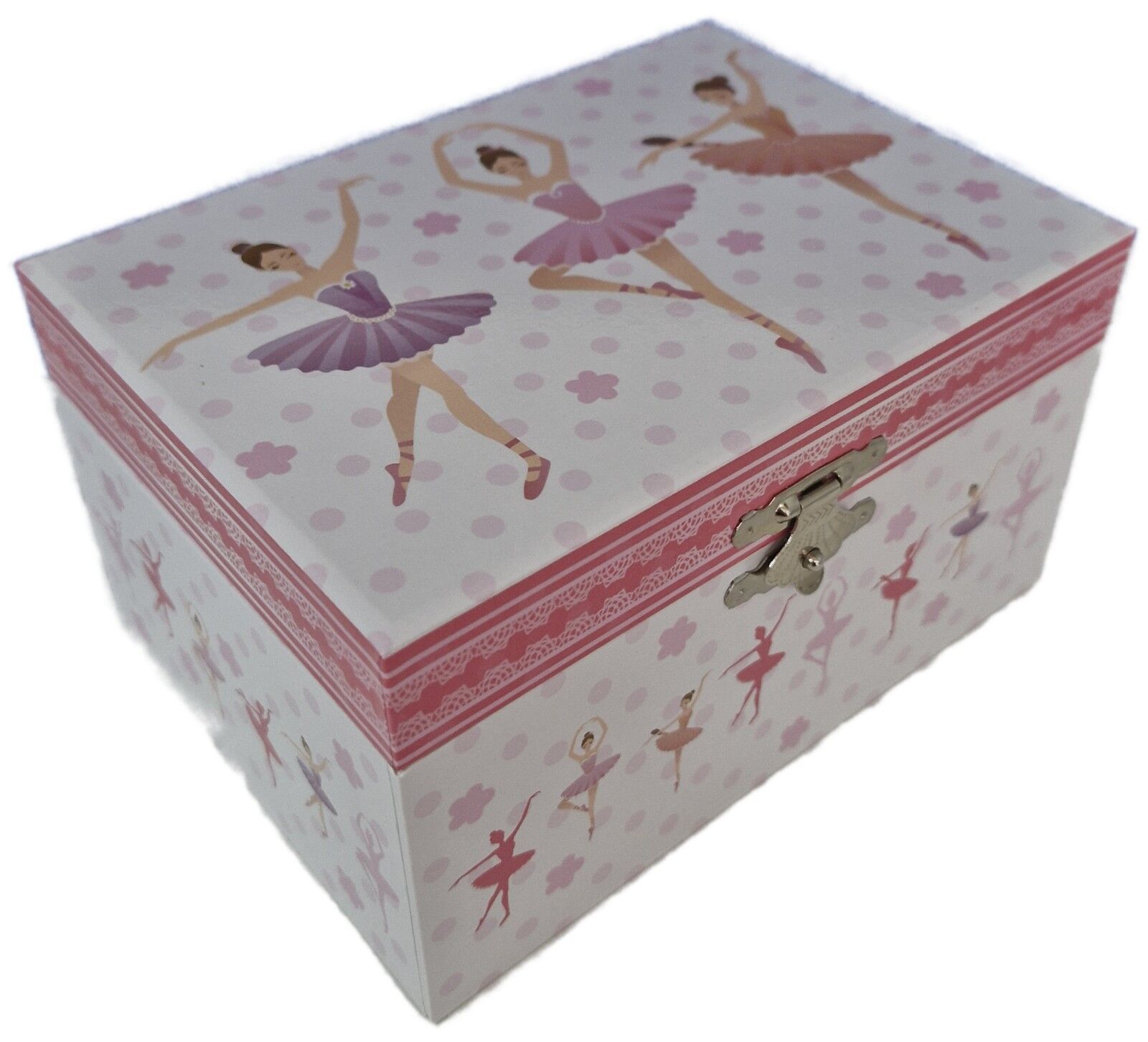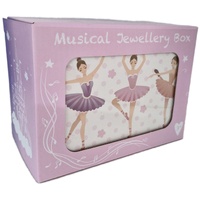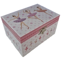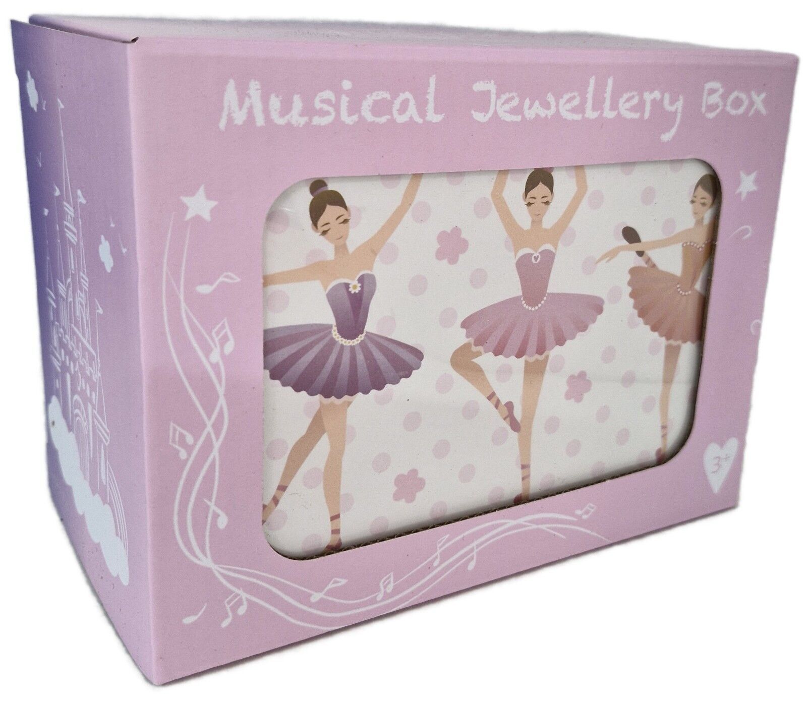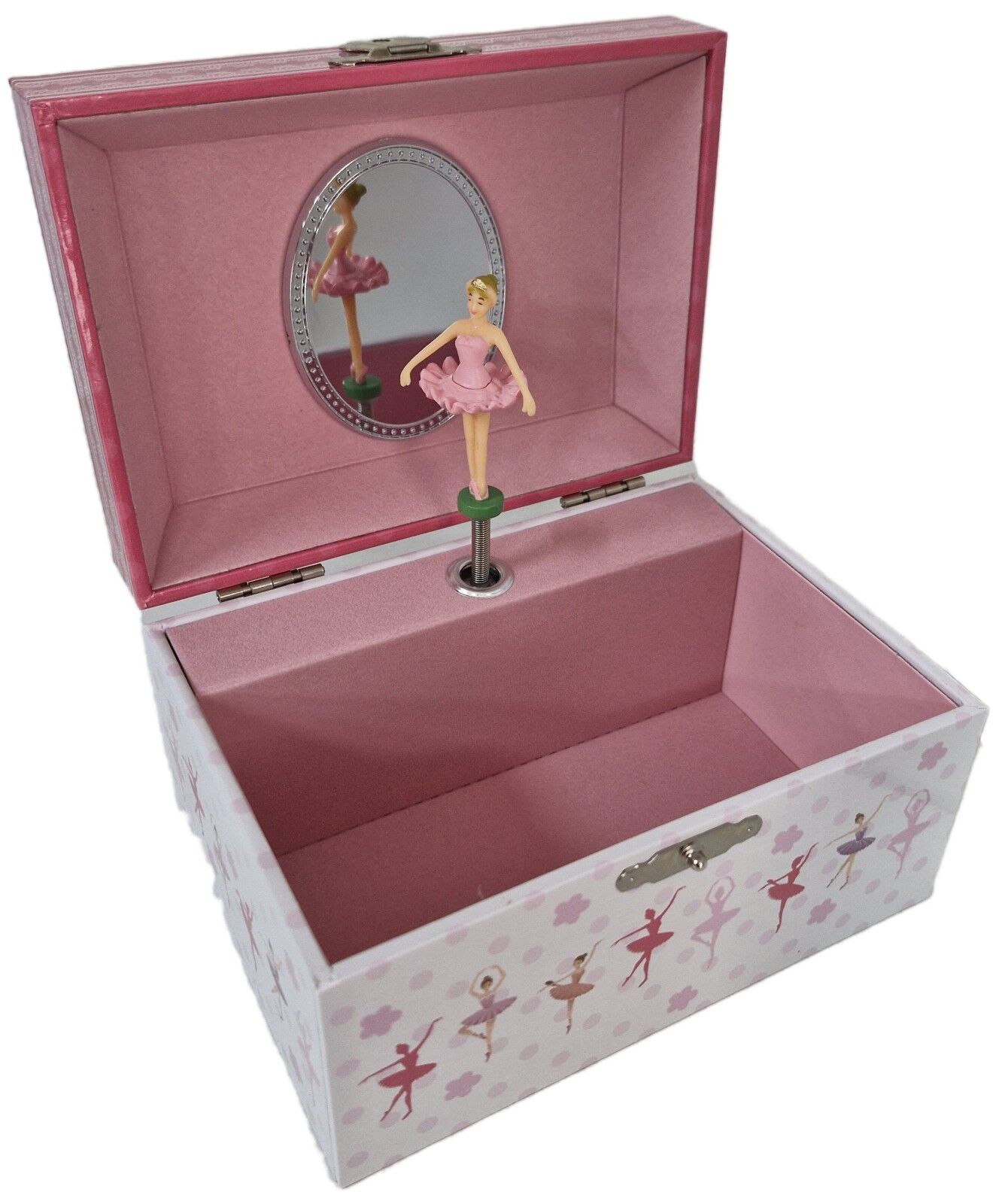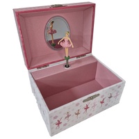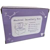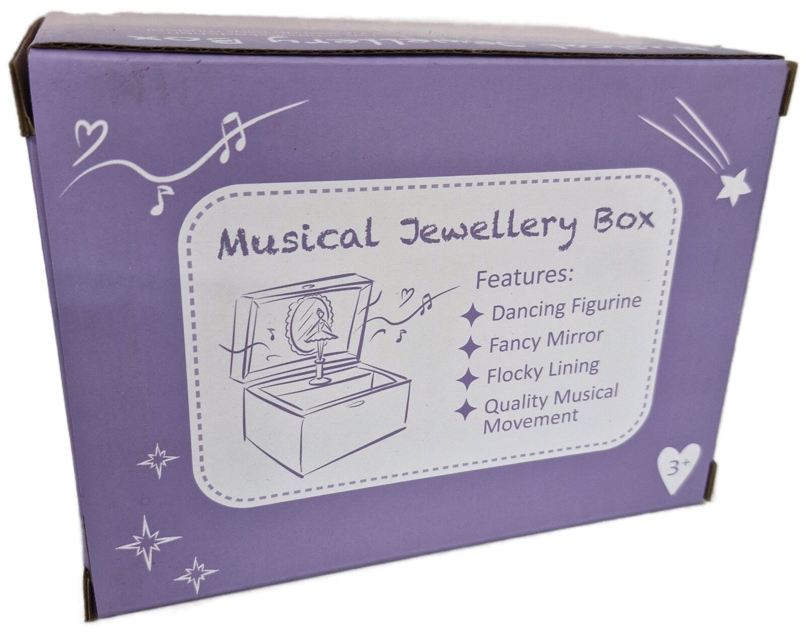 The musical jewellery box has a flocked inner lining and a mirror under the lid.