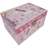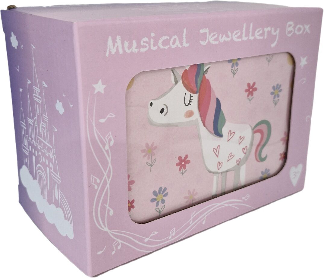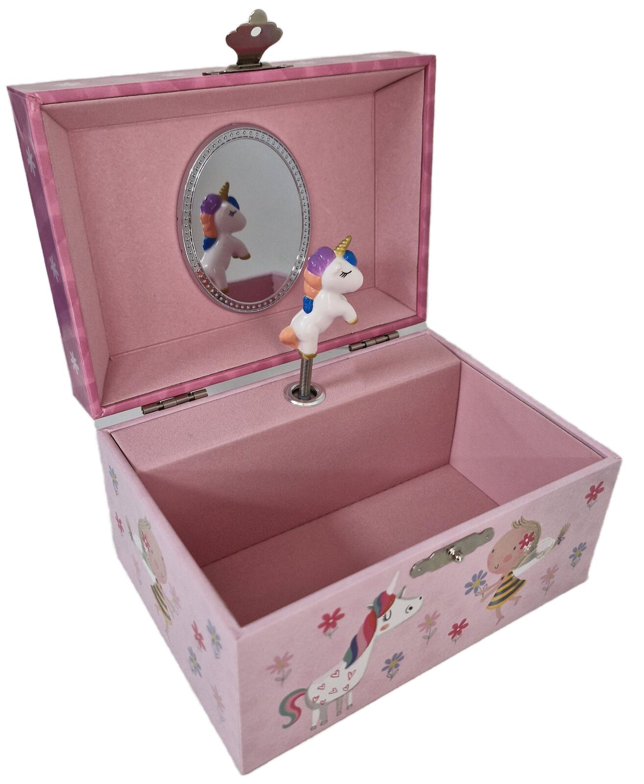 The musical jewellery box has a flocked inner lining and a mirror under the lid.