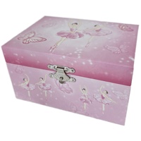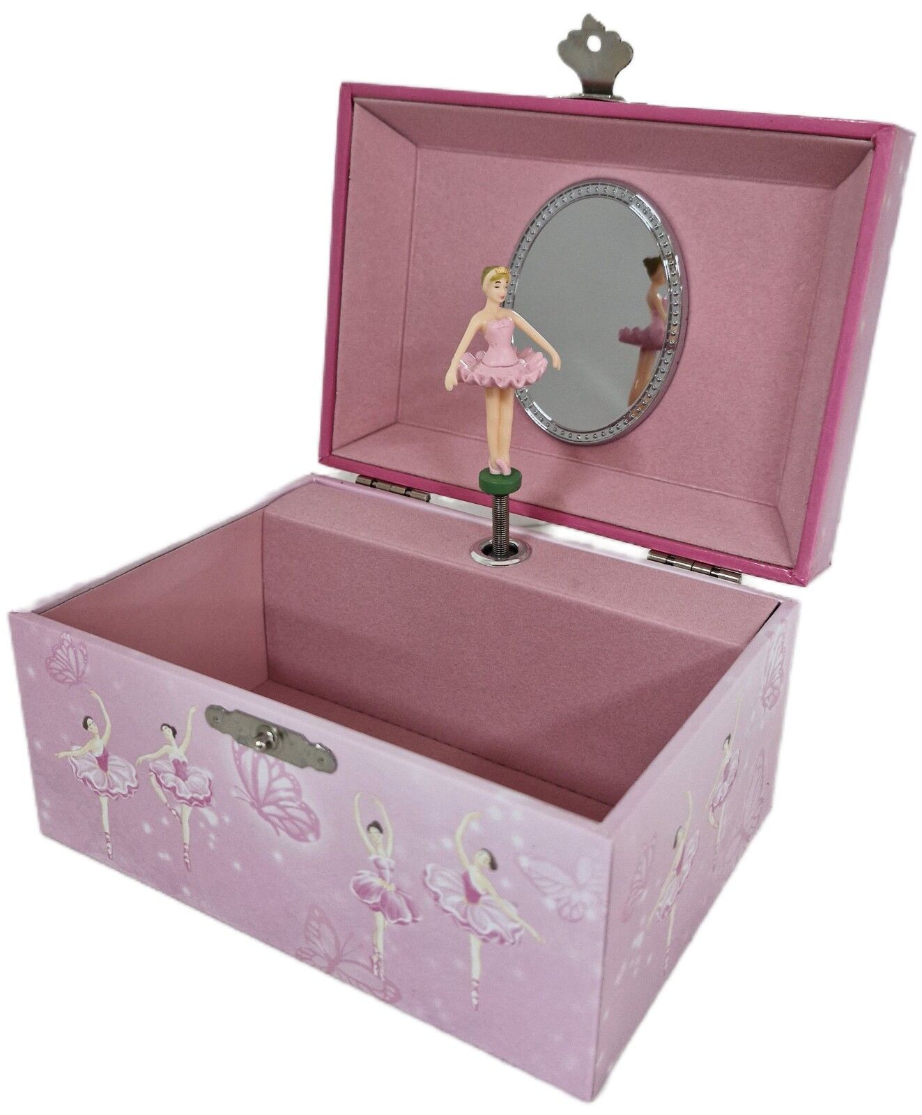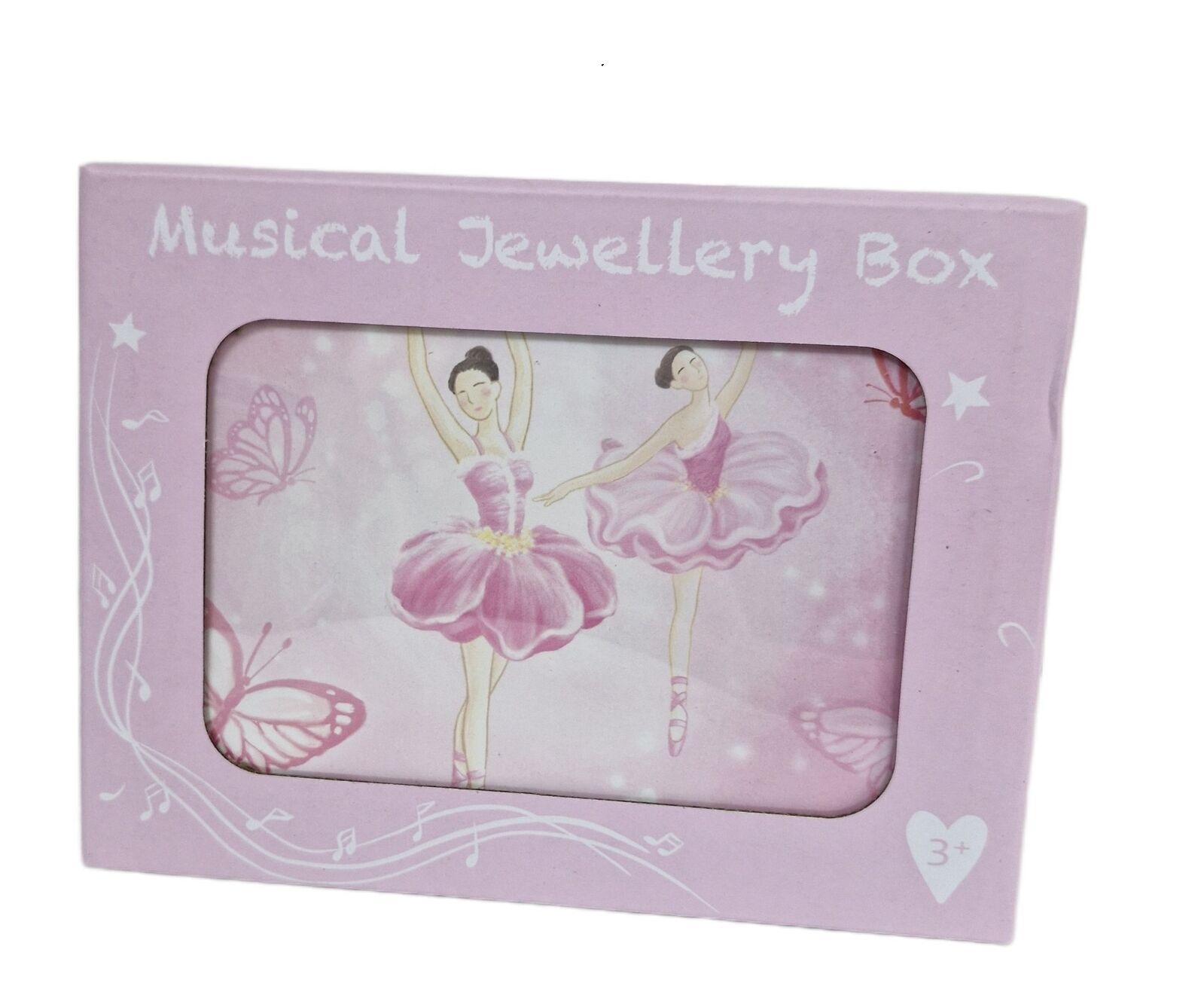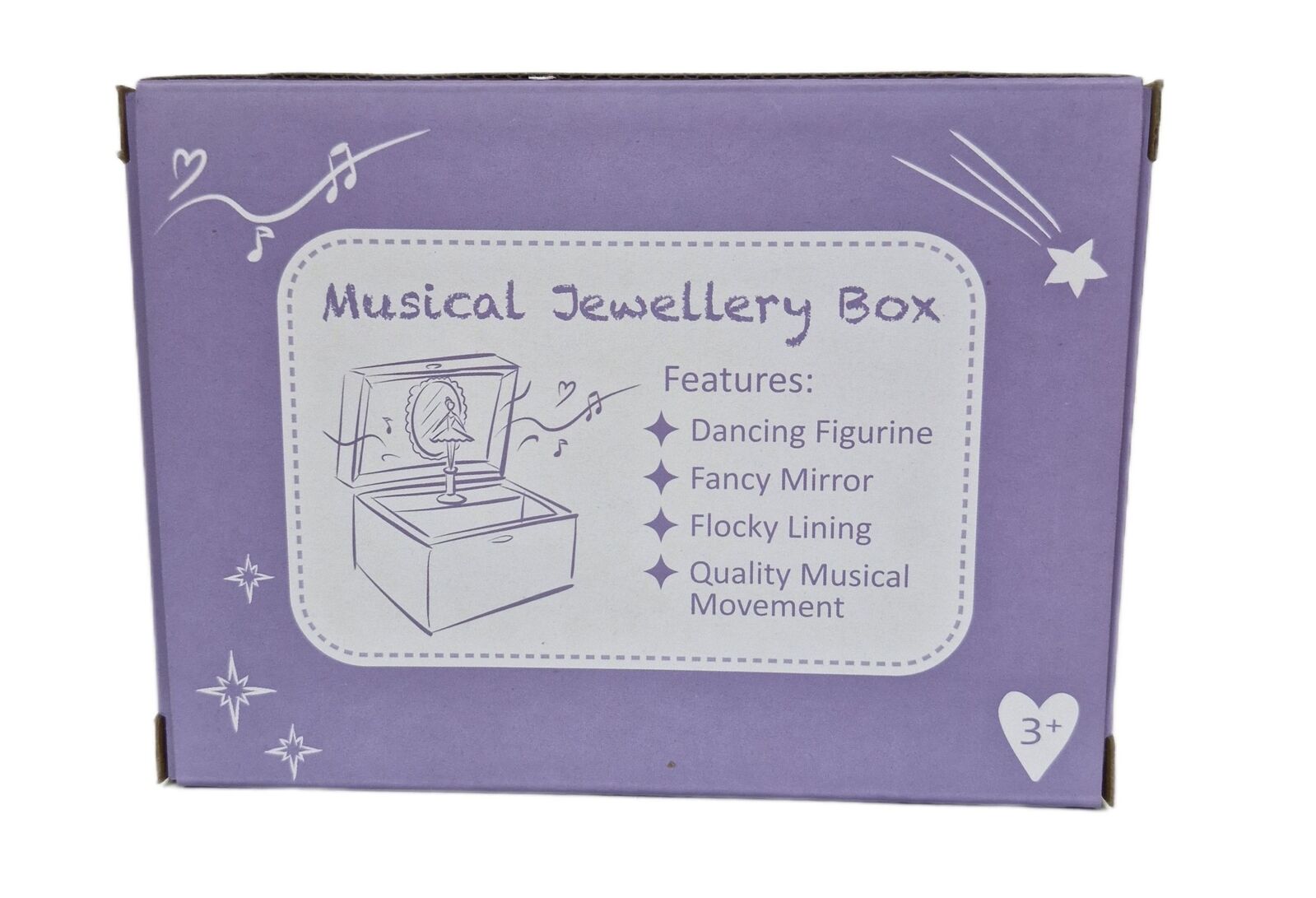 The musical jewellery box has a flocked inner lining and a mirror under the lid.