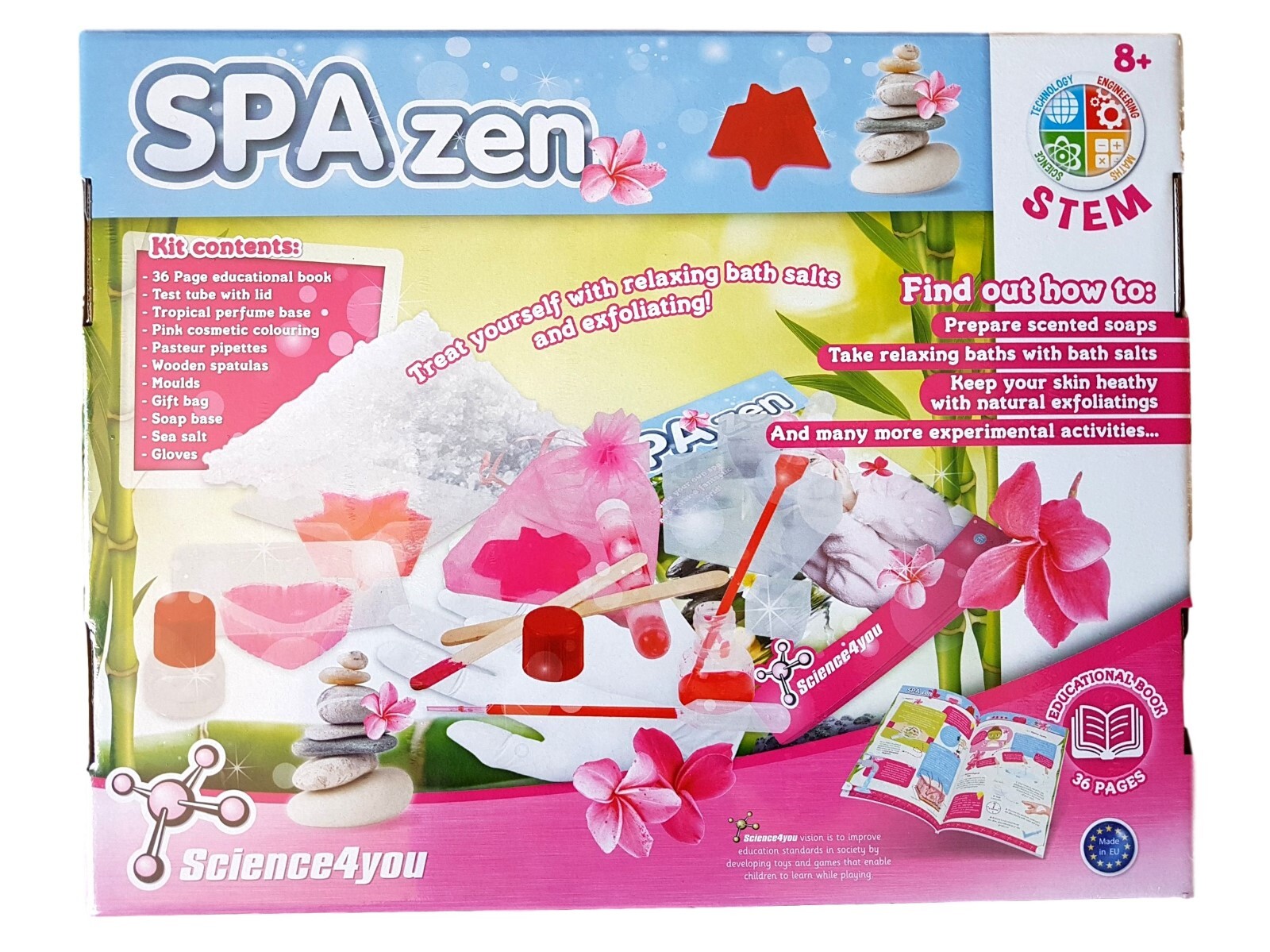 Create your own spa and enter a fatastic zen world! Find out how to prepare scented soaps. Take relaxing baths with bath salts. Keep your skin healthy with natural exfoliatings and many more experimental activities